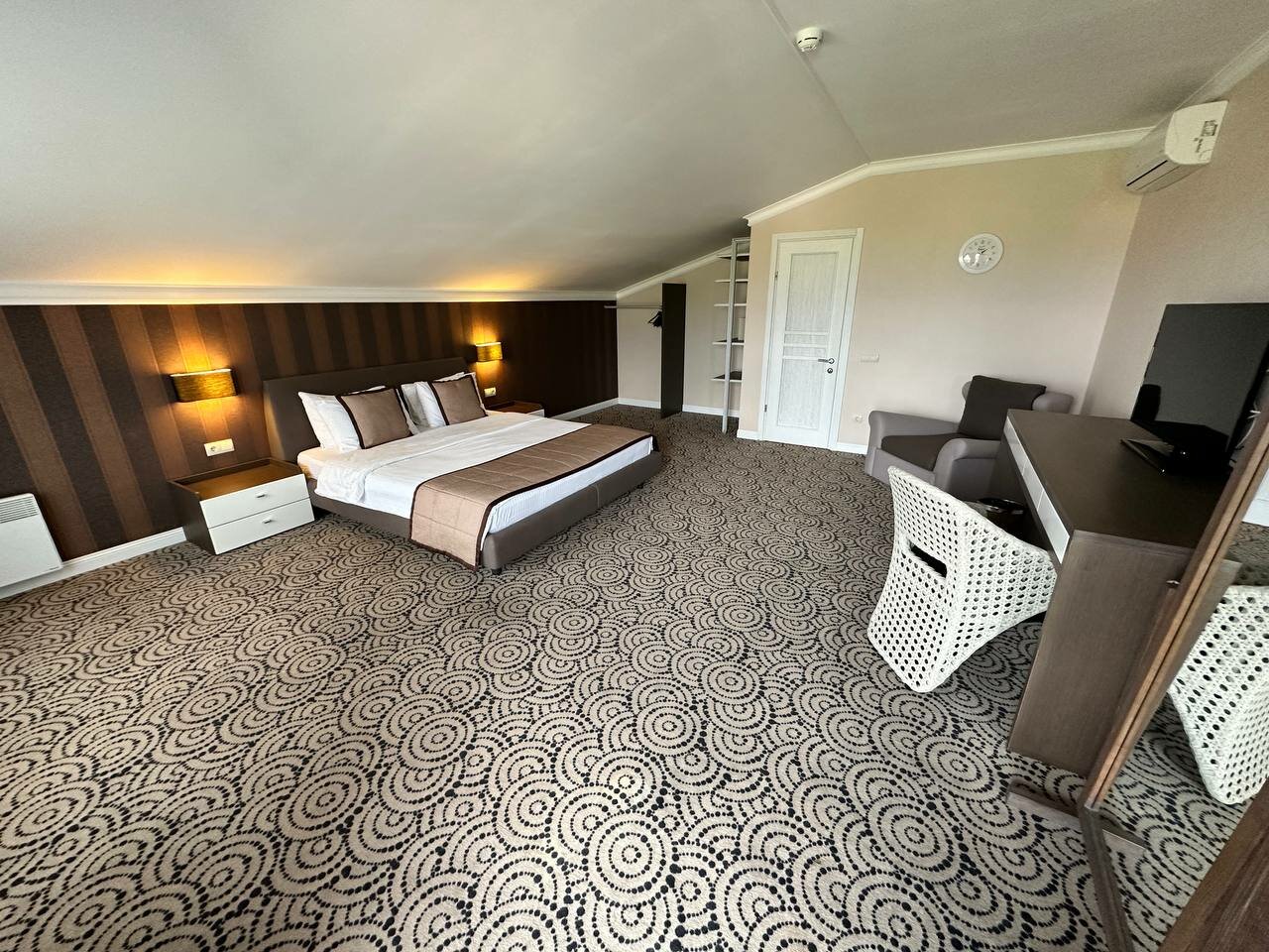 Спасибо большое! Очень понравилось. Уютно, все продуманно, комфортно. Номер двухэтажный. Семь с двумя подростками свободно разместилась. Кухня в номере. Два сан узла . Терраса при входе. Большой видовой балкон из спальни , просто с потрясающим видом. До моря 10 мин на машине, трансфер организован . Спа не большой , но есть все !!!!! Завтраки сытные и большой выбор. Мы часто ездим по Крыму отдыхаем. Это место в списке лучших ! Разрешили с домашним животным за это отдельный лайк!