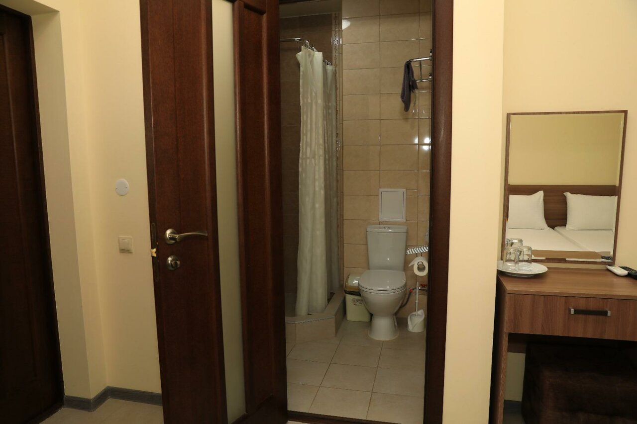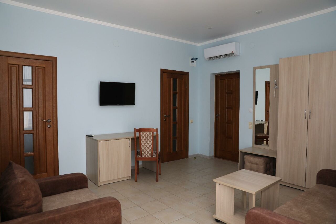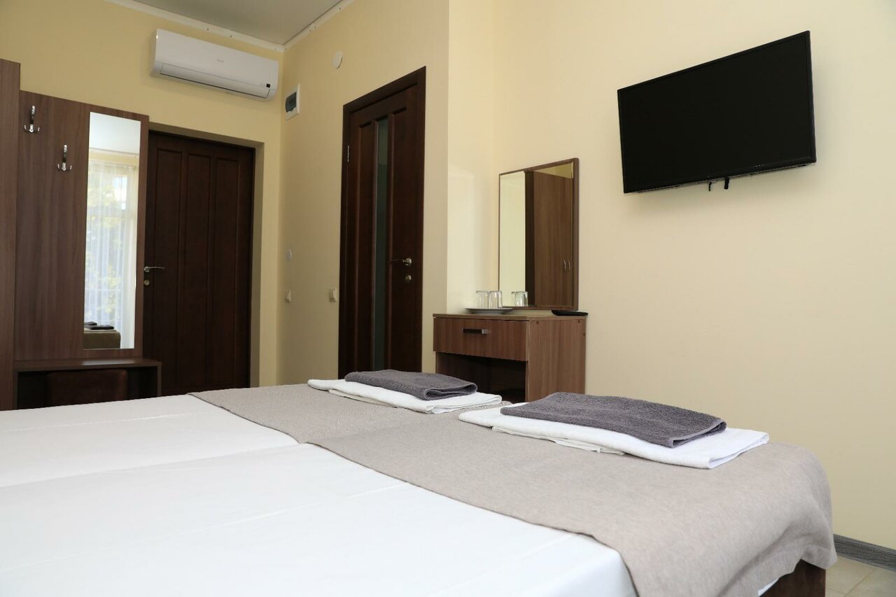 Очень хороший отель, номер как новый (возможно и реально новый), небольшой (взяли двухместный с одной кроватью, кстати тут косяк, оказалось две кровати совмещённые, естественно между ними дыра), но очень уютный. Место тихое, звуков с набережной не слышно от слова совсем, но до неё идти минут 7-10 пешком. Но не без нюансов: на момент начала августа 22го года в районе расположения отеля идёт стройка, а сам отель находится на холме. Третий этаж находится на уровне чуть выше первого этажа относительно уровня земли, как раз за счет этого же холма. Парковки пока что нет, машину приходится ставить на дороге под довольно большим уклоном.
