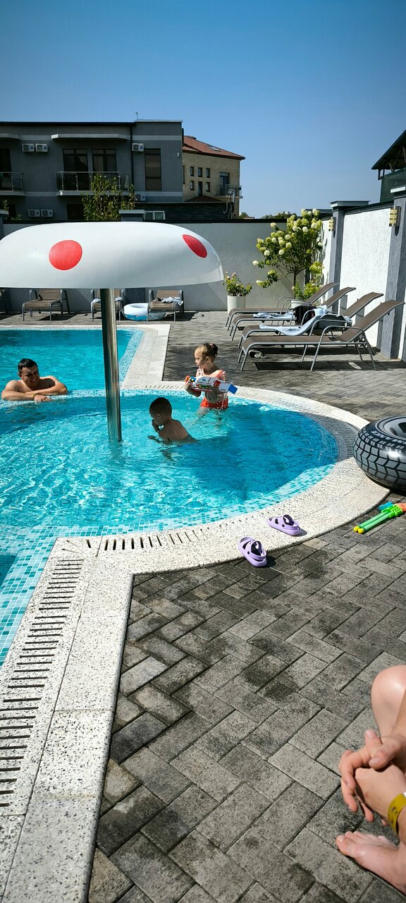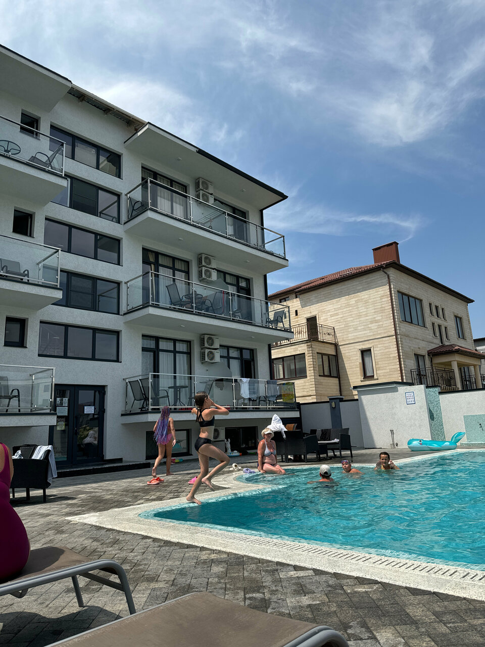 Отдыхаем с семьей в данный момент очень хорошый отель чистый отзывчивый персонал очень хороший добрый хозяин приедем сюда ещё обязательно до пляжа 2 минуты, один небольшой минусик это до собственного пляжа минут 15, а так все просто супер