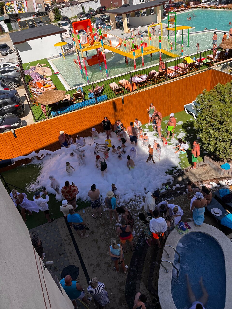 Отдыхали в середине августа, с погодой не повезло конечно. Но сотрудники отеля своей доброжелательностью делали наш отдых превосходным. На территории просторный бассейн, с двумя детскими зонами, детская площадка с батутами. Своя столовая, на цокольном этаже, еда очень вкусная, как дома. Комнаты очень чистые, молодцы. Особое спасибо девочкам с ресепшена, полная информационная поддержка была с момента бронирования.