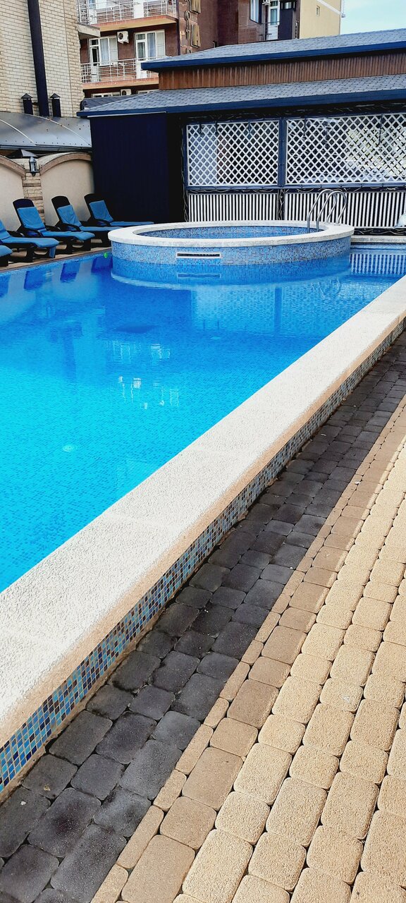 Отдыхали с 29.08-05.09.2024, всё понравилось, особенно бассейн с подогреваемой водой. Хороший номер полулюкс на 1этаже очень понравился (чистый, светлый, сантехника в порядке). Столовая на цокольном этаже. Приветливые девушки-персонал. Кристина очень внимательно относится к отдыхающим. Так-же понравилось кафе рядом с отелем, очень вкусный шашлык!