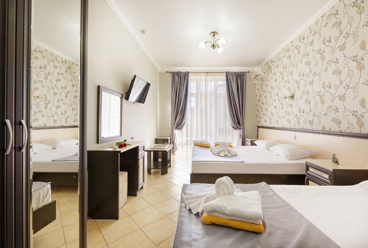 Отличный отель. Всегда чисто,комфортно. Уборка в номере ежедневная. Имеется собственная столовая. Бассейн с подогревом,если море прохладное можно погреться в нём. В этом году обновили систему доступа в номер,не с ключа, а по карте. Имеется сейф для ценных вещей. Приятный, отзывчивый администратор.Интересный дизайн. Отдыхаем здесь не в первый раз, всё прекрасно. Рекомендую.