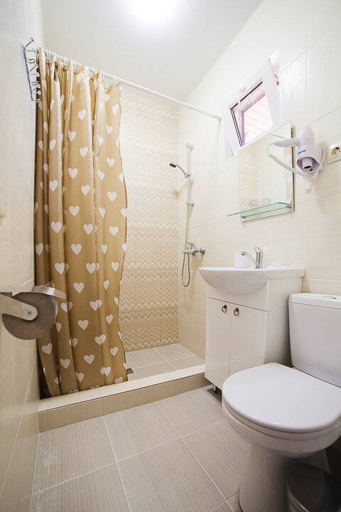 Однокомнатные номера укомплектованные мебелью, телевизором, сплит-системой, холодильником, общим санузлом и душем на общей блок.