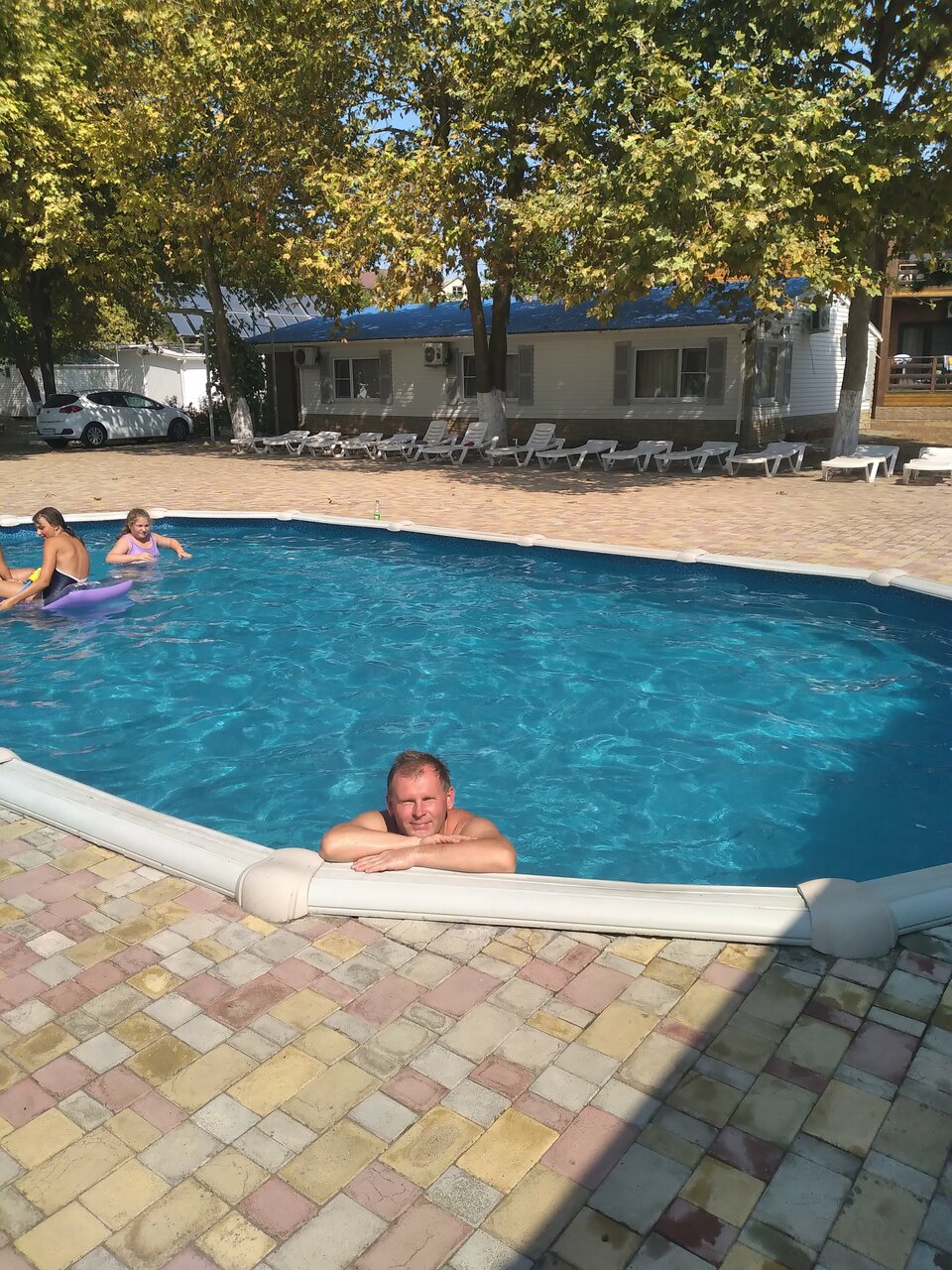 Неожиданно отличная база отдыха. Большая очень ухоженная и чистая территория, очень много зелени . Шикарный розарий на всей территории. В номерах просто, но чисто Есть горячая вода, холодильник, туалет и душ. Уборка по запросу. Чистый бассейн. Рядом с бассейном титан и микроволновка, всегда можно взять термос на ресепшен. Персонал очень доброжелательный. До моря 20 минут моим пенсионерским шагом. Рядом столовые, кафе, шашлыки, мини рынок с фруктами и ягодами. Рекомендую.