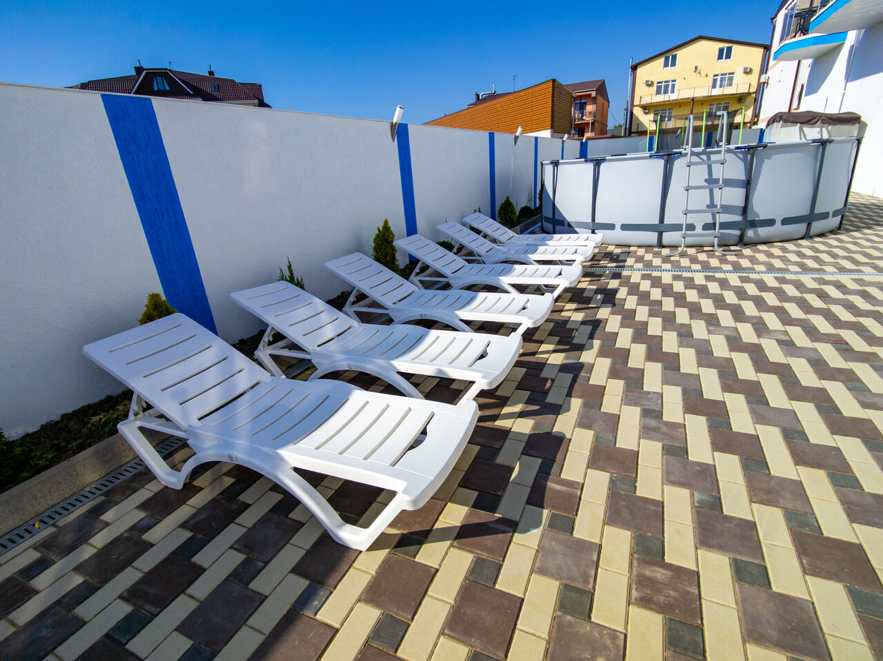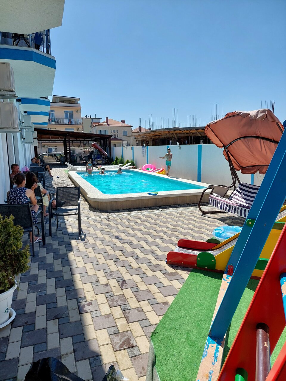 Очень понравилось и детям и взрослым, расположение рядом с морем, и в пешей доступности от парка, аквапарка, все магазины и аптеки рядом, номера чистые, двор хороший, есть где посидеть вечером, бассейн чистый большой, есть качели, детская небольшая площадка, стирка так же есть, утюг и гладильная доска так же есть,очень дружелюбные и приветливые хозяева Можно на территории купить пиво, мороженое, кофе, цены отличные. Мы довольны. Отдыхали с друзьями, бронировали заранее 3 номера, в номерах чистое белье, полотенца, в ванной фен, одноразовые гели, шампунь, туалетная бумага. Вообщем отлично провели время. Советую ДелАрт