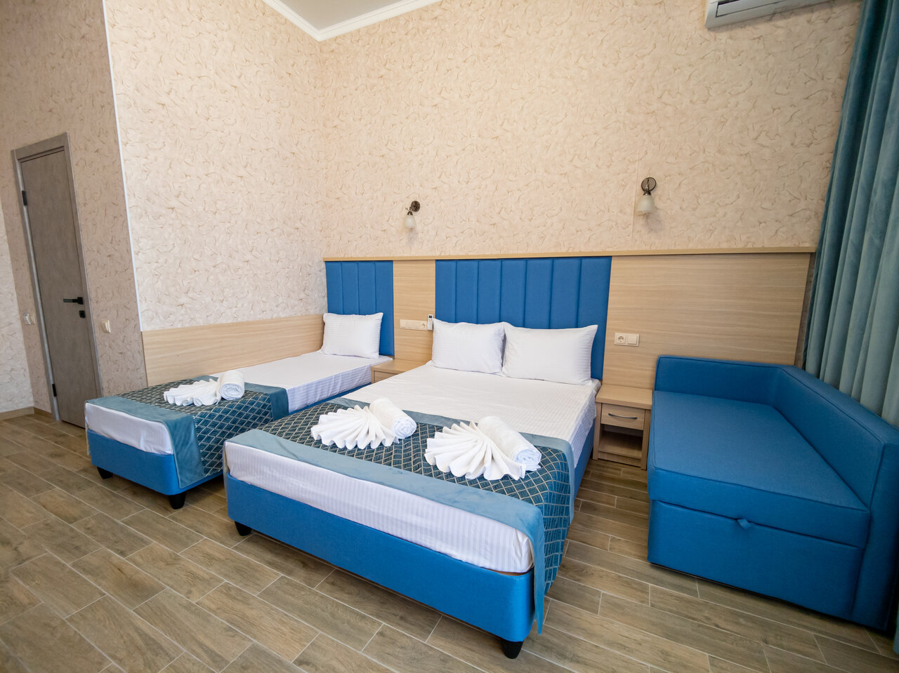 Выражаю благодарность хозяевам отеля за такое уютное место у моря!!! Спасибо Вам за вашу заботу о клиентах, внимательность, отзывчивость и добродушие. Отель новый, чистый, комфортный. В шаговой доступности от моря. Во дворе чистейший бассейн, детская площадка, шезлонги, терраса, парковка. Кухня расположена на первом этаже. В номере холодильник, телевизор, фен, кондиционер. За уборку в номере отдельно благодарим девочек Наталью и Гулю)) Спасибо всем БОЛЬШОЕ за тёплый приём! Желаем Вам успехов, благополучия, процветания и много много благодарных клиентов!!!