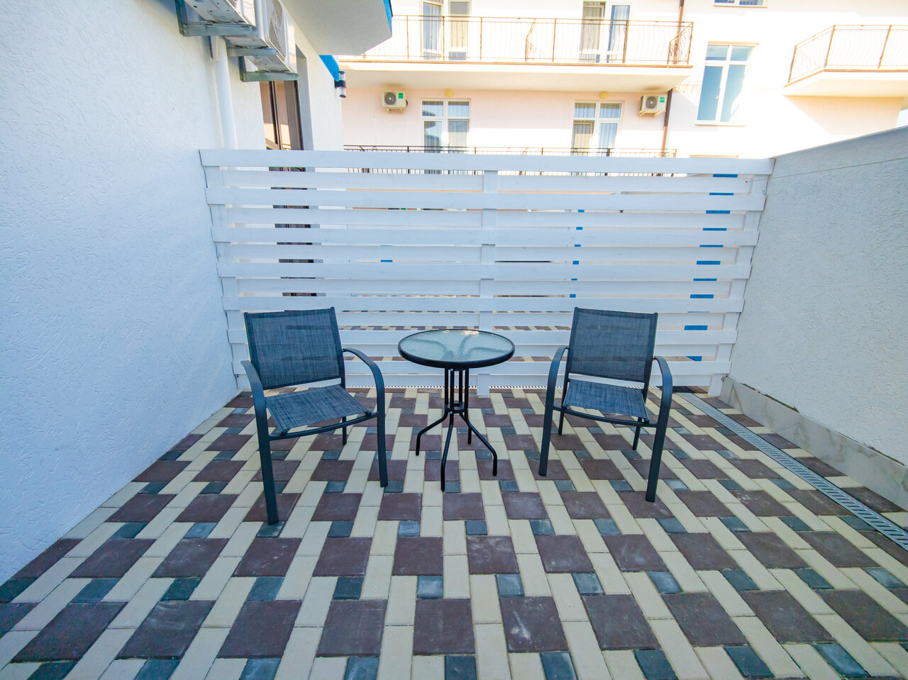 Замечательный отель. Были там 10 дней. Есть кухня, где можно приготовить завтрак. Так же напротив отеля есть столовая, скромно, но вкусно. До моря идти минут 7. В номере каждые 3 дня была уборка, после уборки в номере чисто и свежо. Отель сам по себе красивый. Бассейн чистили по утрам, купаться в нем одно удовольствие. Так же около бассейна можно полежать, всегда были свободные лежаки. Есть где посидеть вечерами. Очень душевно и уютно. Хозяевам огромное спасибо!