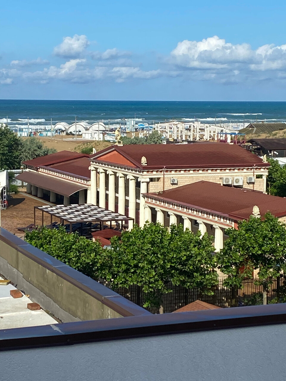 - Собственный пляж с лежаками.