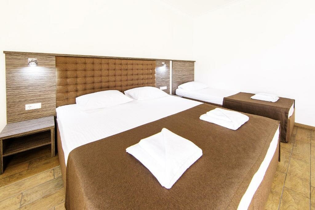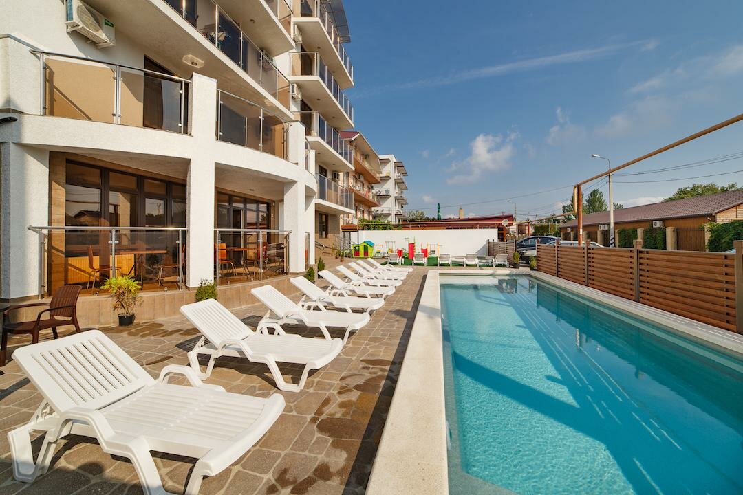 Наш отдых подошел к концу и хотелось бы оставить свой отзыв ) нашла отель по рекламе в интернете и не пожалела, что выбрала его) приветливый персонал, очень удобное расположение( тихое место, то, что нужно для отдыха с детьми, близко море , магазины, рынки), очень вкусная и разнообразная еда, (единственное, что добавила бы это десерты и побольше фруктов), подогреваемый бассейн, наличие детской площадки. Ежедневная уборка номера. Спасибо вам огромное за наш отдых) буду рекомендовать вас!