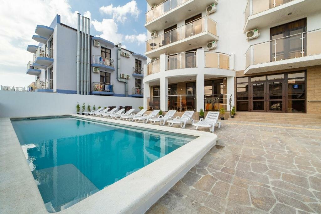 Для Витязево, отель отличный.Хорошая кухня, отличный ремонт, но нет территории и 2 бассейна не большие, детский это вообще почти как ванная. Пляж находится напротив станции водных аттракционов, а это тех. Зона отнимающая место от пляжа, который и так переполнен. На пляже спокойно не отддохнешь, т.к.везде орёт музыка.Этот отель должен быть в Сочи или Джемете, а так как он находится в ванючем аду на земле под названием Витязево, всё его плюсы на фиг не нужны за такую цену.