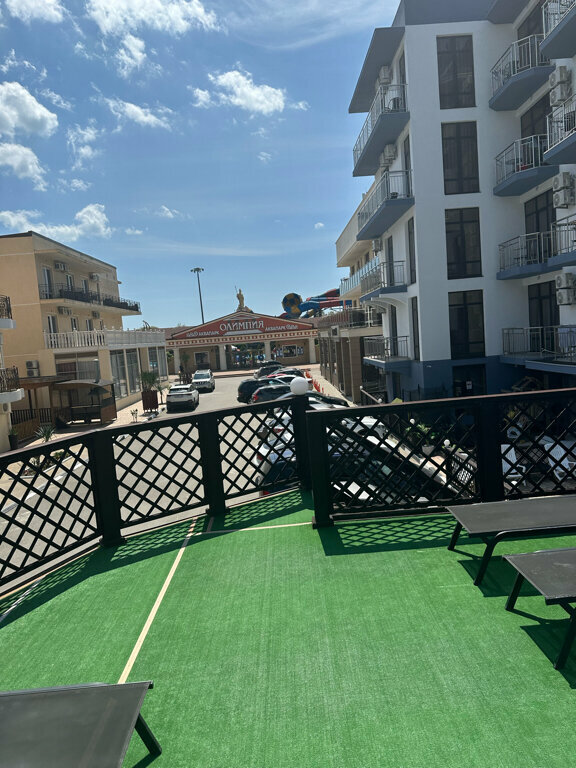 Август 2022. Свежий ремонт, очень аккуратный санузел, кондиционер, холодильник, сейф, кулер на этаже. Влажная уборка каждый день. Белый меняют раз в 4 дня, полотенца раз в 2 дня. Всегда чистые коридоры и лифт. Во дворе — бассейн, бар, площадка для загара на крыше бара, мойка для ног (после пляжа). Столовая внутри гостиницы. Приветливая управляющая Оксана на ресепшене, хозяин всегда на месте. Из минусов — маленькая парковка (входит в стоимость). Главный плюс — гостиница находится на берегу моря, рядом с аквапарком, до пляжа идти 3-5 минут.
