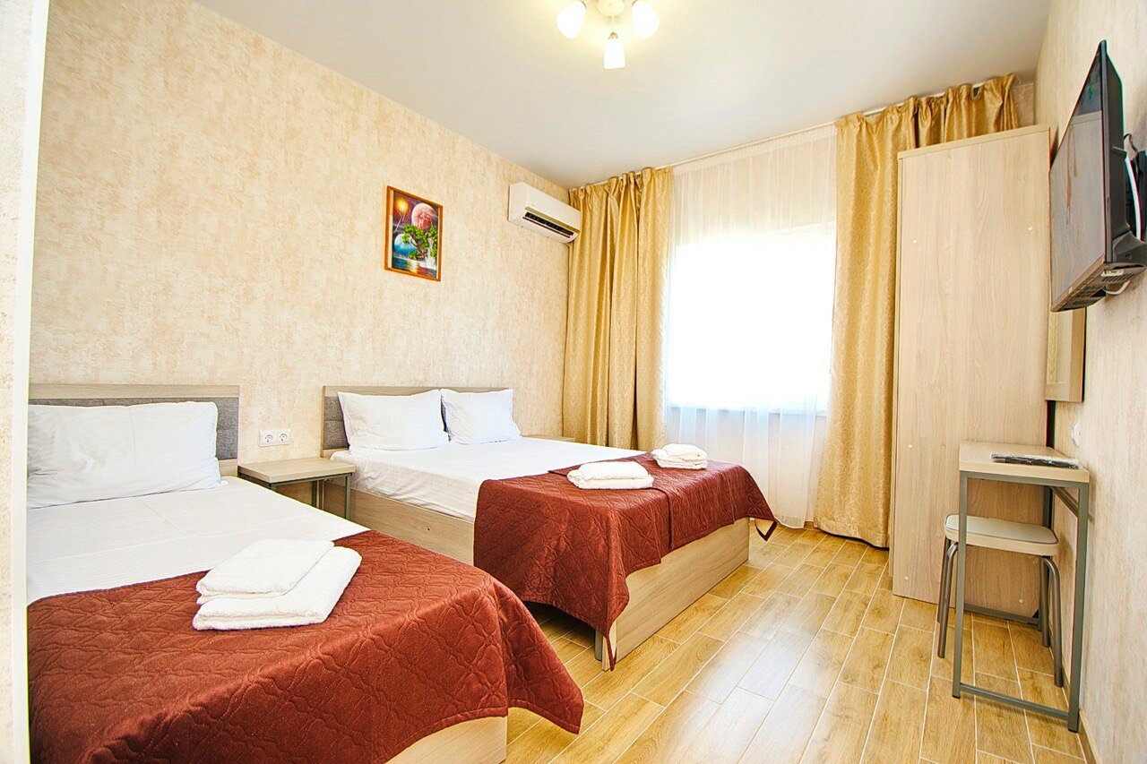 Отдыхали в этом месте 2 раза. Уютные и чистые номера с холодильником и кондиционером. Шкаф для одежды, туалетный столик с зеркалом и пуфом. Общая кухня с достаточным количеством посуды, утюг. Во дворе стоят столики, можно завтракать на свежем воздухе) Двор ухожен, можно посидеть в беседке, есть мангал для шашлыка. Также во дворе есть бассейн и лежаки. Дружелюбные владельцы Местность не шумная. До моря около 20 мин. пешком. По пути рынок с фруктами, сувенирами и прочим. Рядом магазин Пятерочка, аптека, Waldberries, чуть дальше магазин Магнит. До пляжа Тортуга ( отличная, чистая вода) можно доехать на автобусе, ехать около 15-20 мин. Автобусы ходят довольно часто.