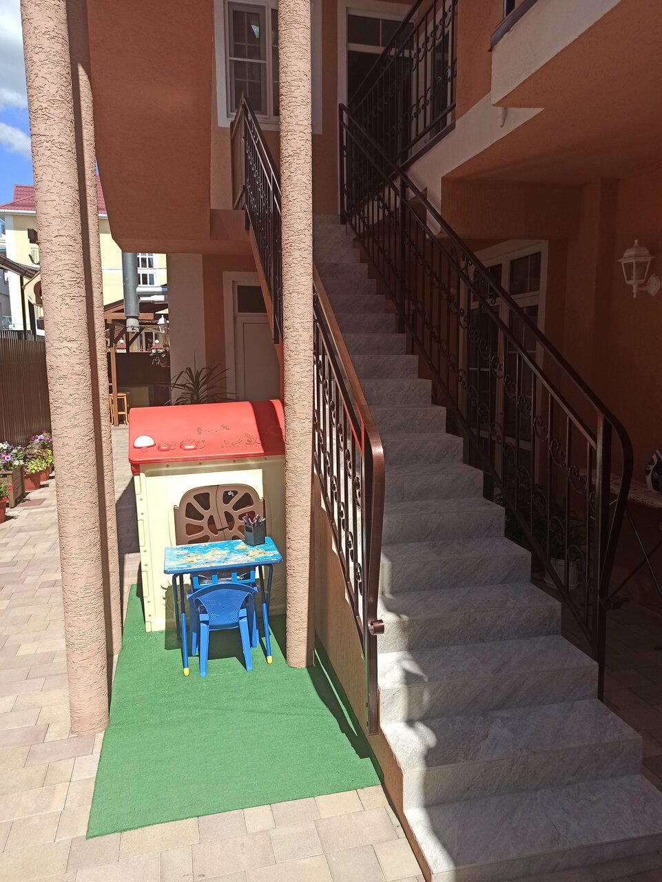 Отличное место для отдыха с детьми. Уютный и чистый дворик, чистые и новые номера. Отзывчивые хозяева. В шаговой доступности магазин Пятёрочка и Магнит. Куча кафешек и магазинчиков.