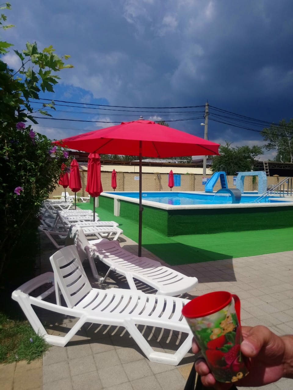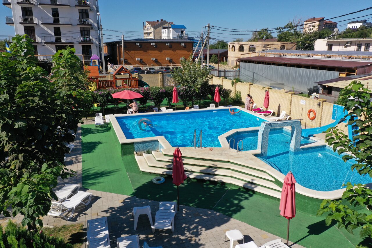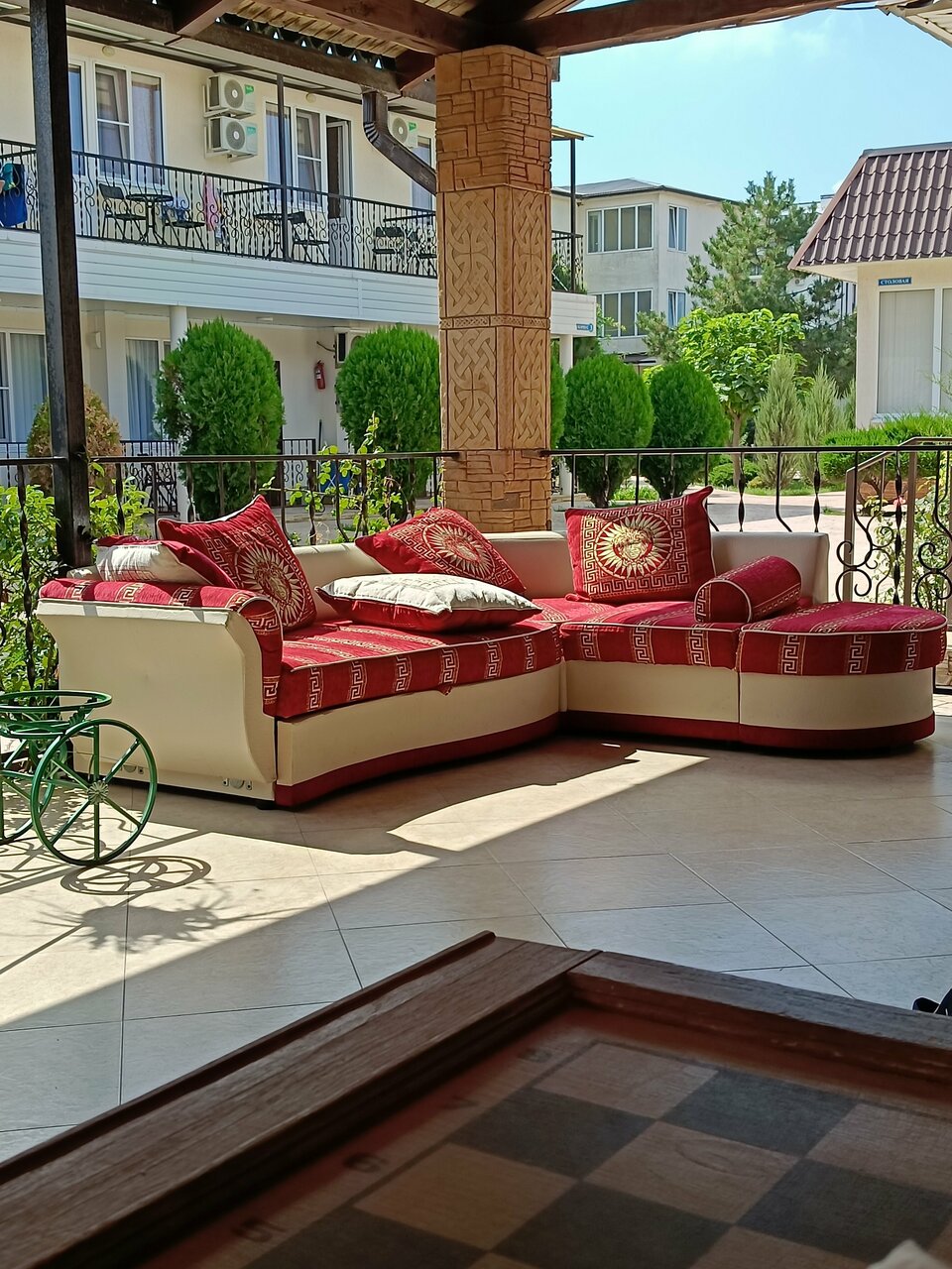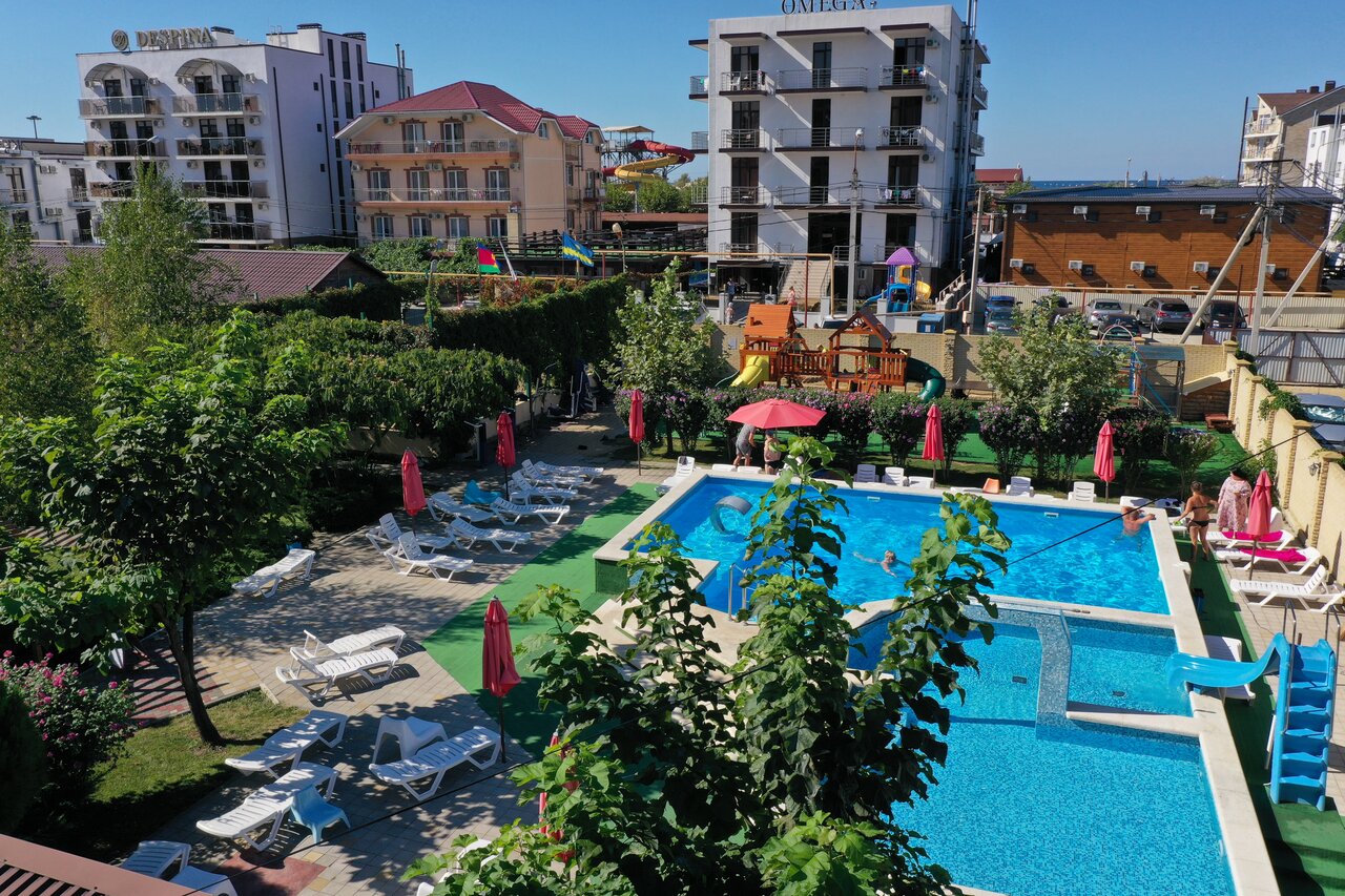 Отличное место для семейного отдыха. Уютные, свежие номера, со всем необходимым. Красивая, ухоженная территория, бассейн. Своя столовая с разнообразными и вкусными блюдами. Своя стоянка для авто. Доброжелательный персонал. До моря 7 минут, есть свой пляж с шезлонгами и зонтиками. Хоть и находится недалеко от шумных центральных улиц, в номере тихо, можно хорошо выспаться.