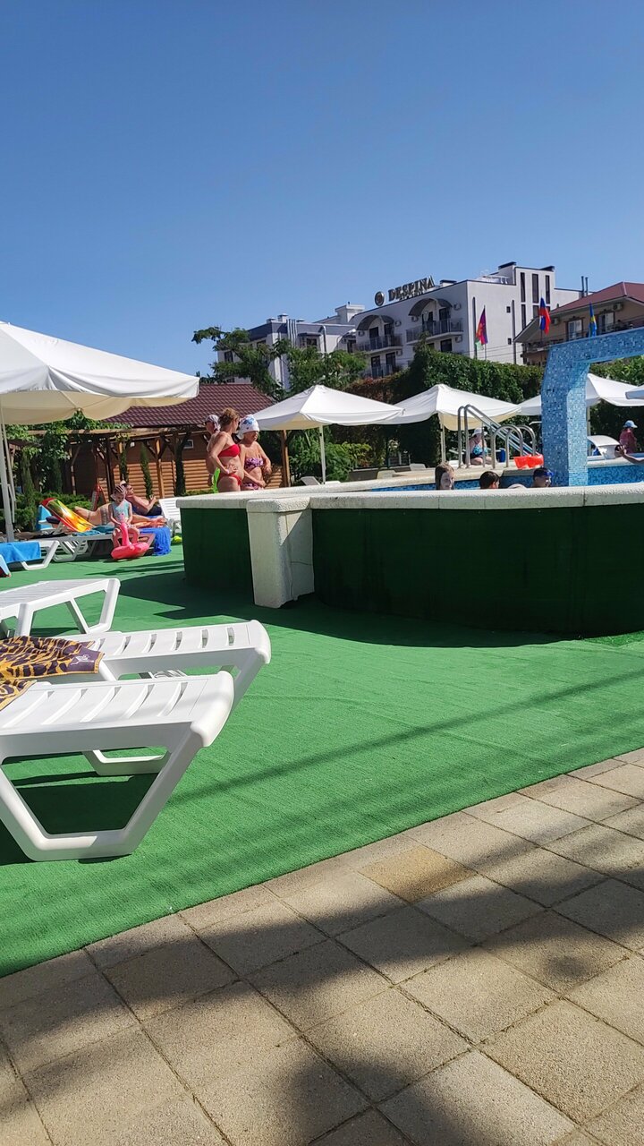 Отличное место, территория вся зелёная, питание шикарное (шведский стол) всегда есть рыба, мясо, курица, фрукты (персики, черешня, слива) до моря 7-10мин. Всем рекомендую)