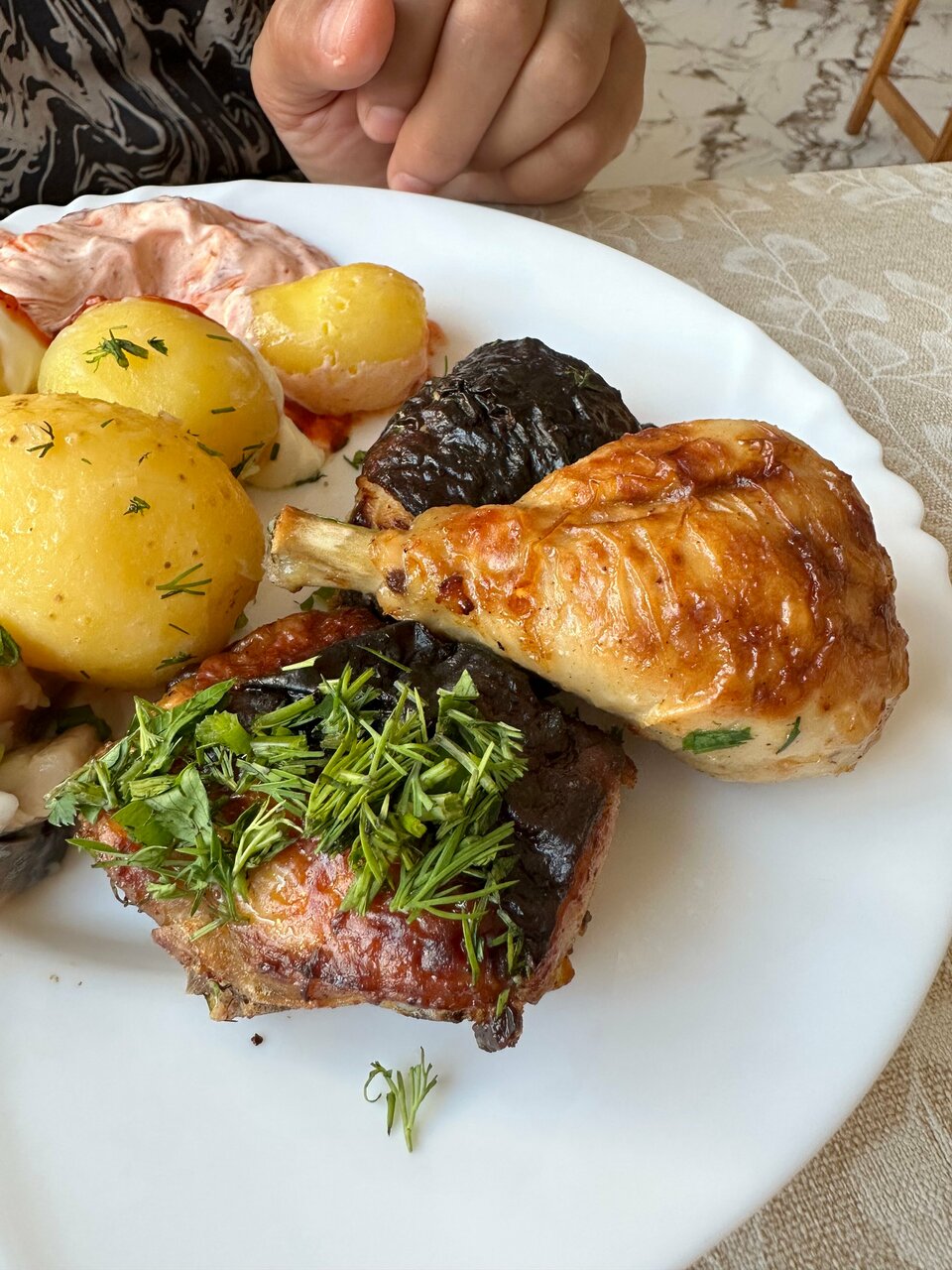 Кормят отлично ( в магазине кроме воды и мороженного ничего не покупали) , территория огромная и охраняемая , есть бассейн и две детские площадки. Также на территории бесплатная парковка для гостей ( у многих отелей нету своей парковки, либо берут деньги за парковку). До моря не спеша идти 10 минут, до лежаков базы отдыха минут 12.Единственное, необходимо лучше следить за домиками , обновить в некоторых номерах мебель. С детьми, Вам сюда!