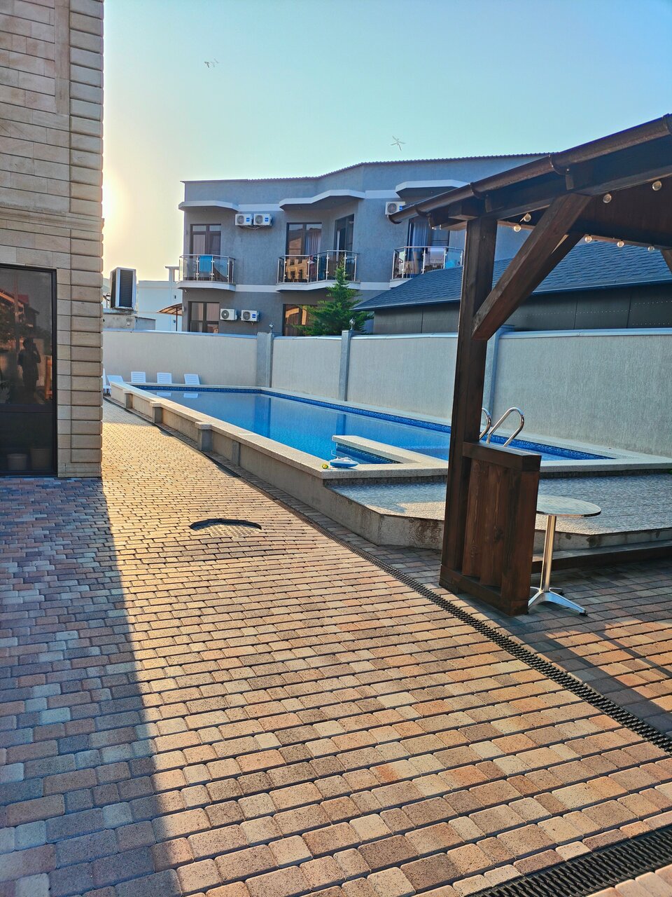 - Наличие бассейна (чистый, большой, иногда обогреваемый).