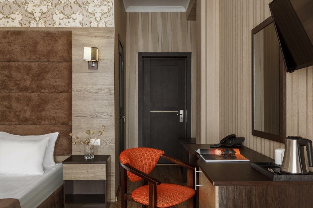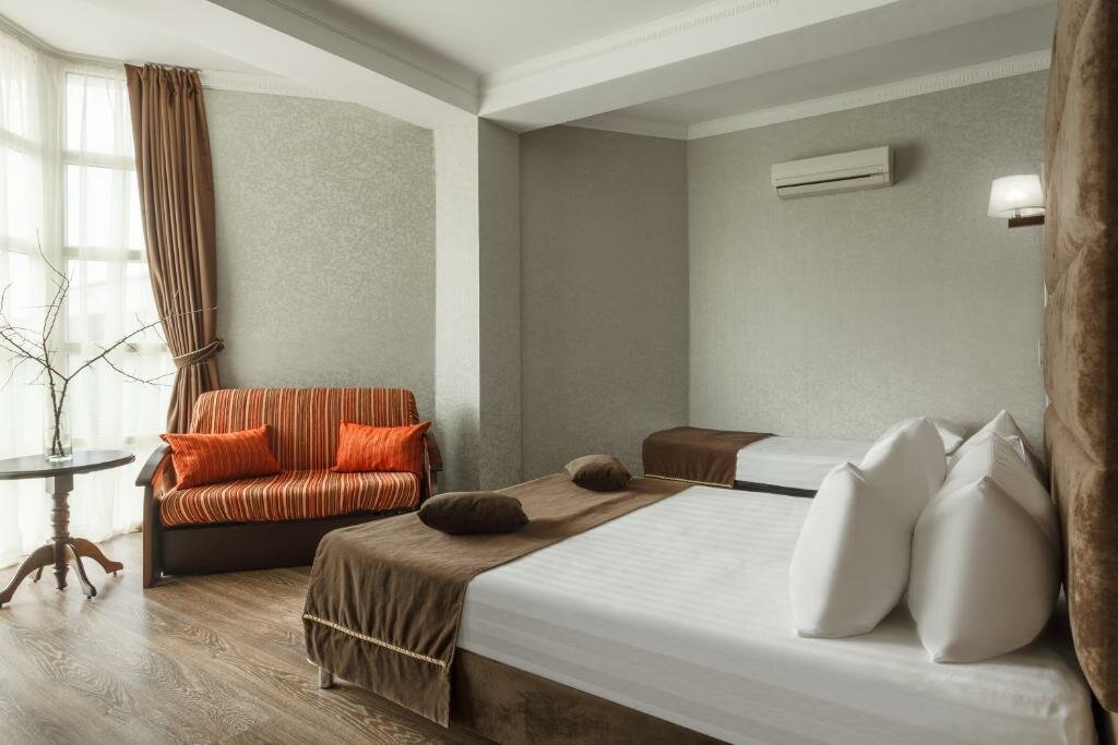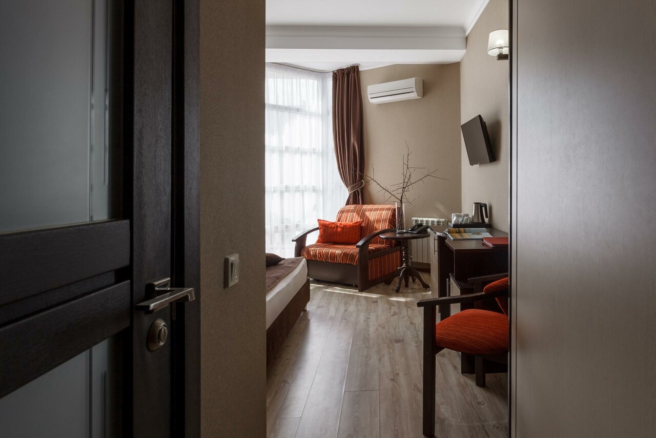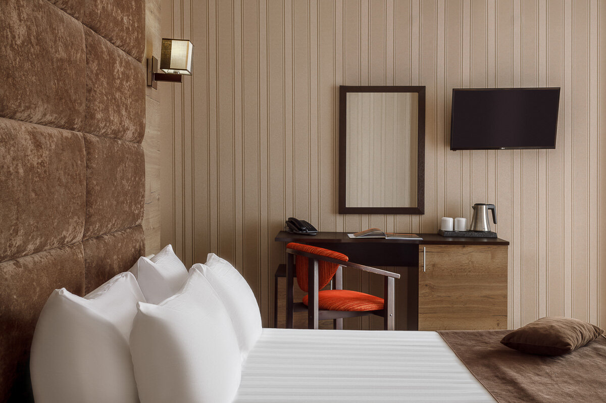 Площадь номера – 24-26 м2Основные места – 2Доп. места – 2В номере:Одна двуспальная кроватьДиван-кровать, как доп.место.Современная мебель, сейф, мини-холодильник,телевизор, сплит-система,чайник,телефон.Ванная комната с душевой кабина.