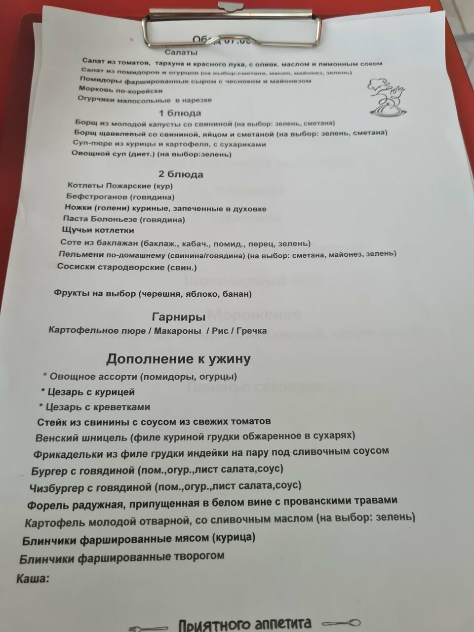 - Ограниченный выбор на обед.