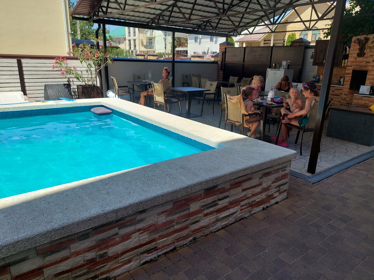 Прекрасно провели время. Место идеально расположено. Рядом 5 ка круглосуточная, много шашлычных , русские блины, трактир михалыча. Бассейн отличный, подойдёт даже для взрослых, есть зона для готовки 2 шт. С парковкой тоже все нормально. Если будет сильный затяжной дождь , 100% не затопит. До море 1 км , но по факту ходили с детьми в 40 градусов, не уставали. Пляж жемчужина России. Место очень много До параллели тоже можно дойти пешком.