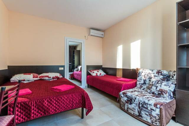 Хорошее место,гостепреимные хозяева.Везде очень чисто и уютно.Для детей много мест для игр(батут,горка,качели).До моря идти прогулочным шагом минут 25.Напротив дома есть не плохая кафешка где можно покушать.На соседней улице есть Сбербанк,Магнит,Пятерочка.В номерах очень комфортно,постельное белье и полотенца меняют раз в неделю.