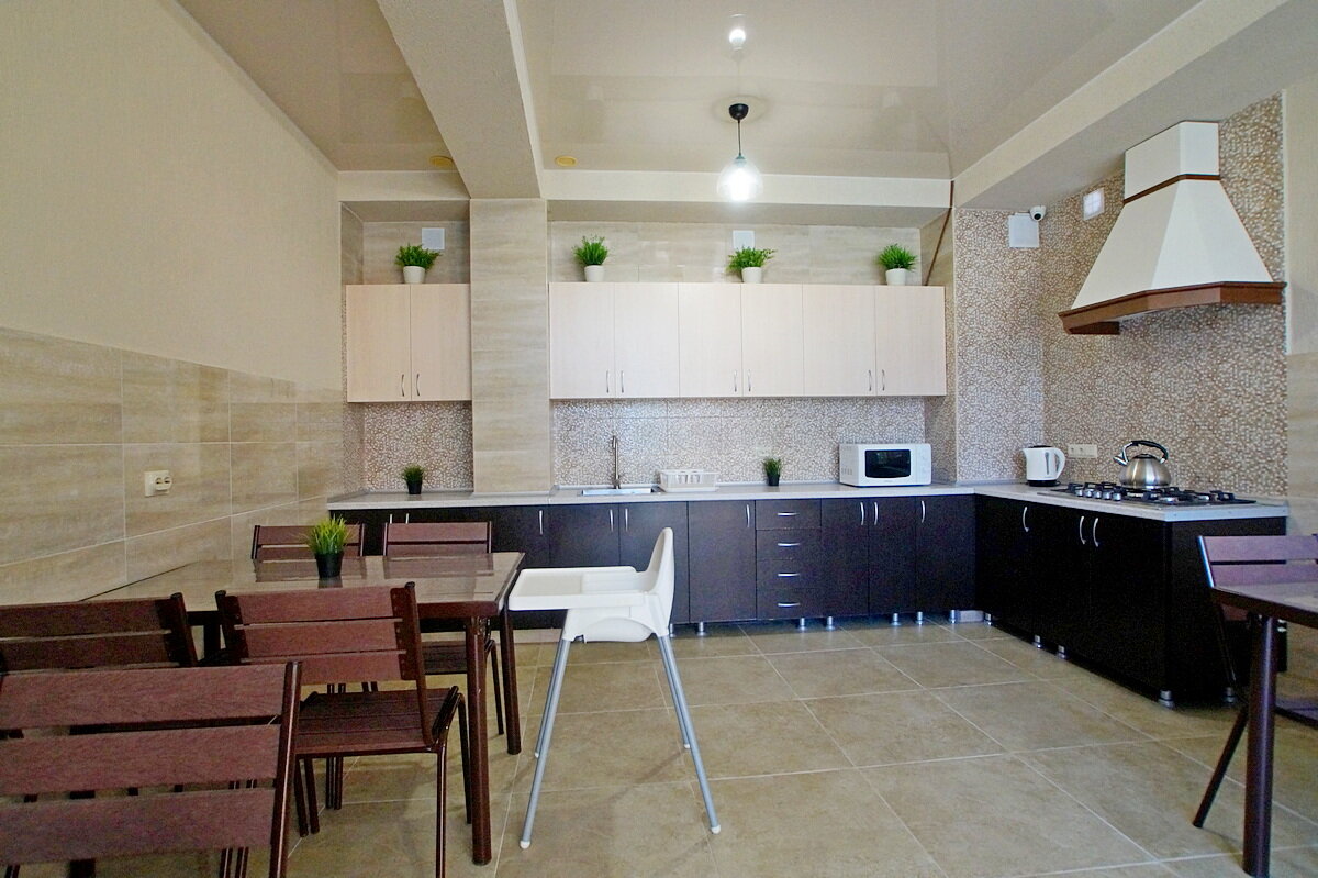Отличное место для семейного отдыха!!! Уже второй раз останавливаемся здесь. Хозяева развиваются. В номерах комфортно, всё новое и современное. Горячая вода,удобные спальные места,сплит система в номерах. Полностью укомплектованная кухня,посуды хватает. Закрытая территория,что удобно с детьми никуда не убегают,родители спокойно отдыхают в видимой зоне. Отличный мангал. Убираются на территории каждый день,есть лежаки для загарания,для детей есть бассейн, всё что на фото совпадает на 100%! Смена белья каждые 5 дней. Хозяева гостеприимные,приятные люди,у которых тоже есть дети и они отлично понимают потребности семей с детьми. Спасибо вам большое!!! Думаю ещё приедем! На счёт отдаленности от моря — этот минус перекрывается тем что дом находится на тихой, спокойной улочке,в удаленности от шумных центральных улиц. Ну а если вы на машине,то это вообще не проблема)))