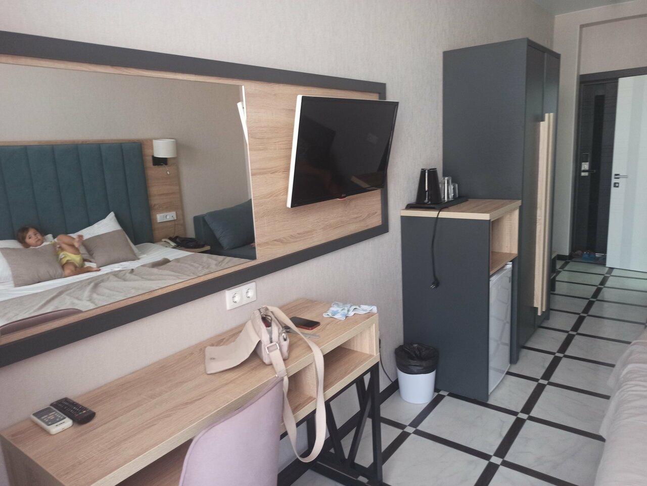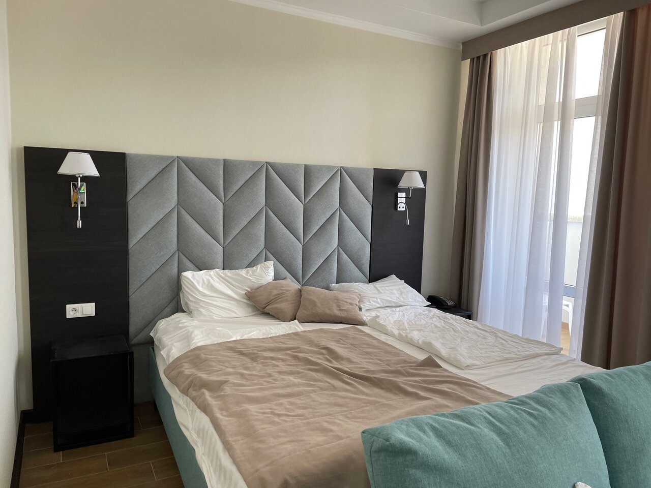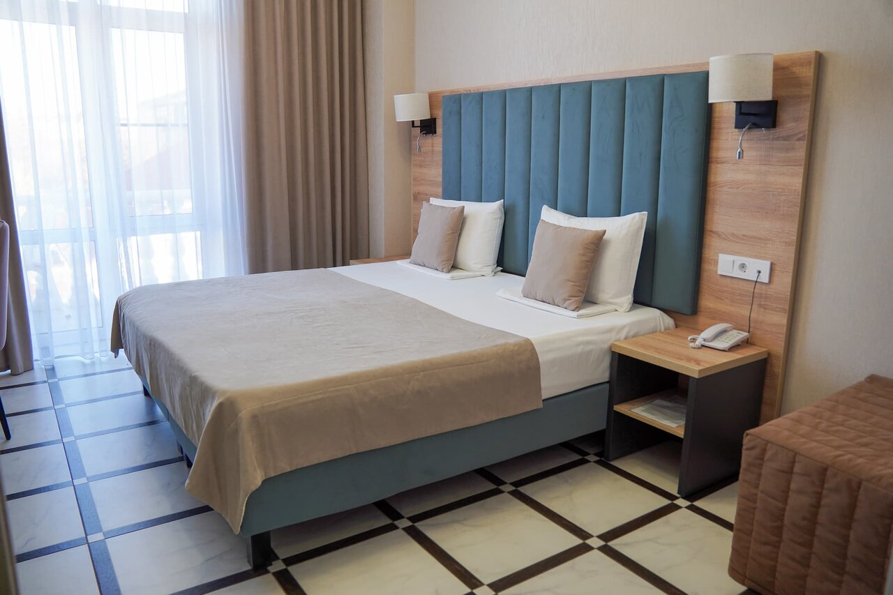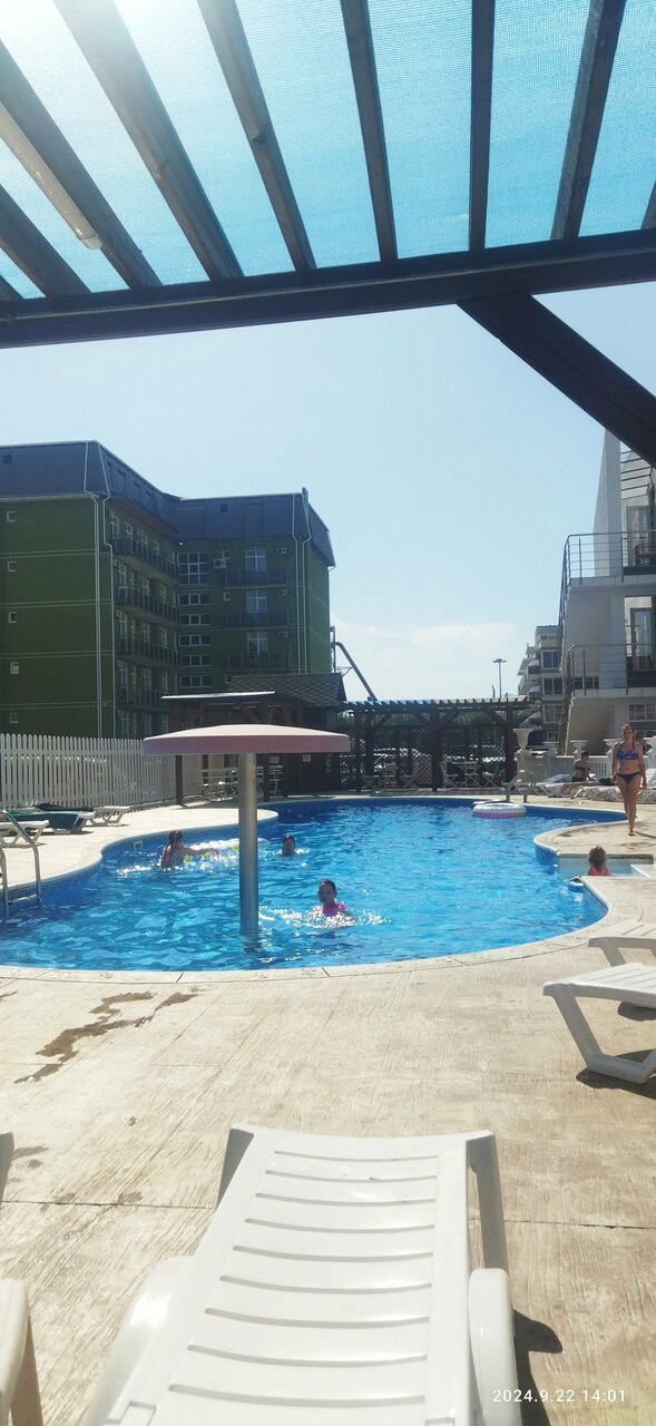 Отличный отель жили во втором корпусе, на третьем этаже с видом на бассейн! Всё чисто, уютно. Отдыхали неделю, за это время на четвертый день поменяли постельное бельё. Полотенца меняли и лёгкую уборку делали каждый день!!! До моря близко.