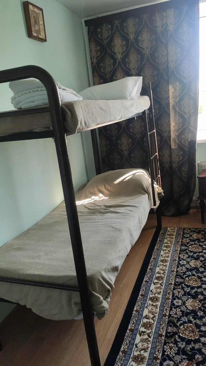 Спокойное приятное место, все по современному, воздух чистый, просыпаешься от того, что звучат колокола и стрекочут кузнечики, как дома в детстве в летний период в деревне. Удобства на этаже, пожертвование за 4х местный номер 2000 р., завтрак входит, обед 300 р., с человека, полдник и ужин 150 р. Есть Wi-Fi, TV. Тишина и покой. На территории все чисто, есть живность, павлины, куры, цезарки, куропатки, коровы. Творог, молоко сметана все своего производства очень вкусное. Сходили в храм строящийся на Горке, прикоснулись к камню, ополонули лица водичкой. На старте въезда в Крым можно смело останавливаться и отдыхать после дороги. Дай Вам Господи процветания и вежливых путников Были рады впервые приехать в Крым и попасть к Вам