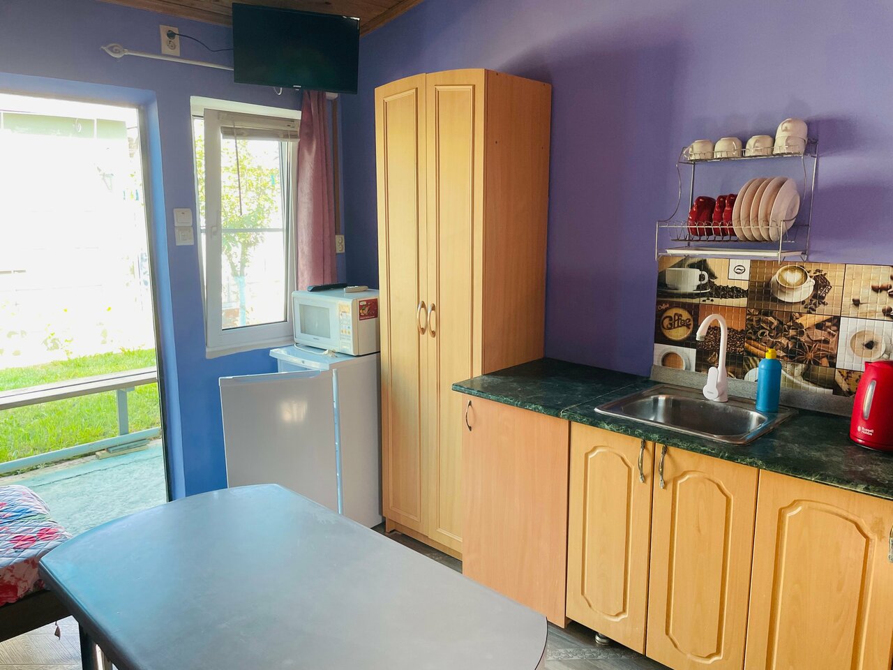 Уютный гостевой домик. В номере есть все нужное: спальные места, белье, посуда, полотенца. Очень чисто, вот прям очень. Особые плюсы — санузел с горячей! водой в номере, небольшая детская площадка, бассейн, кондиционер. Есть возможность готовить самим, холодильник и индукционная плита также в номере. Очень приветливые хозяева.