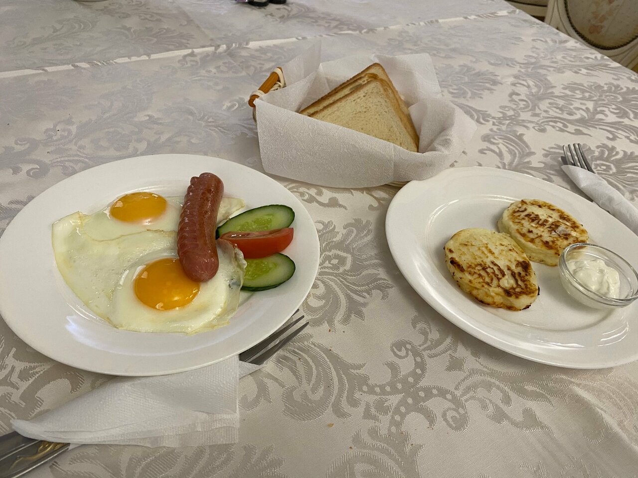 Гостиница, скажем так, не свежая. Из начала века. Ну и завтраки с 9 до 11 — это как вишенка на торте..