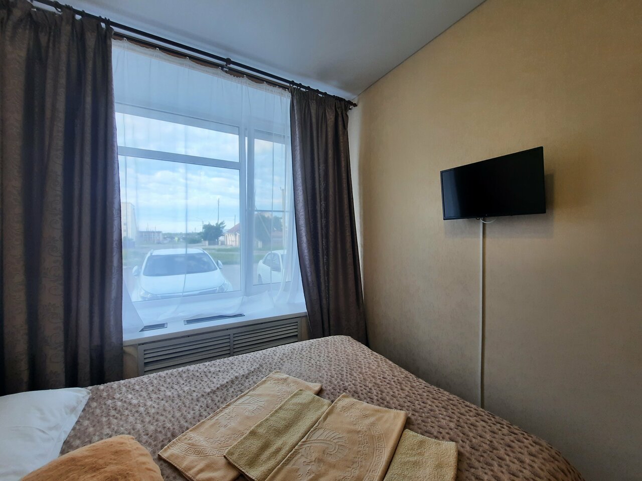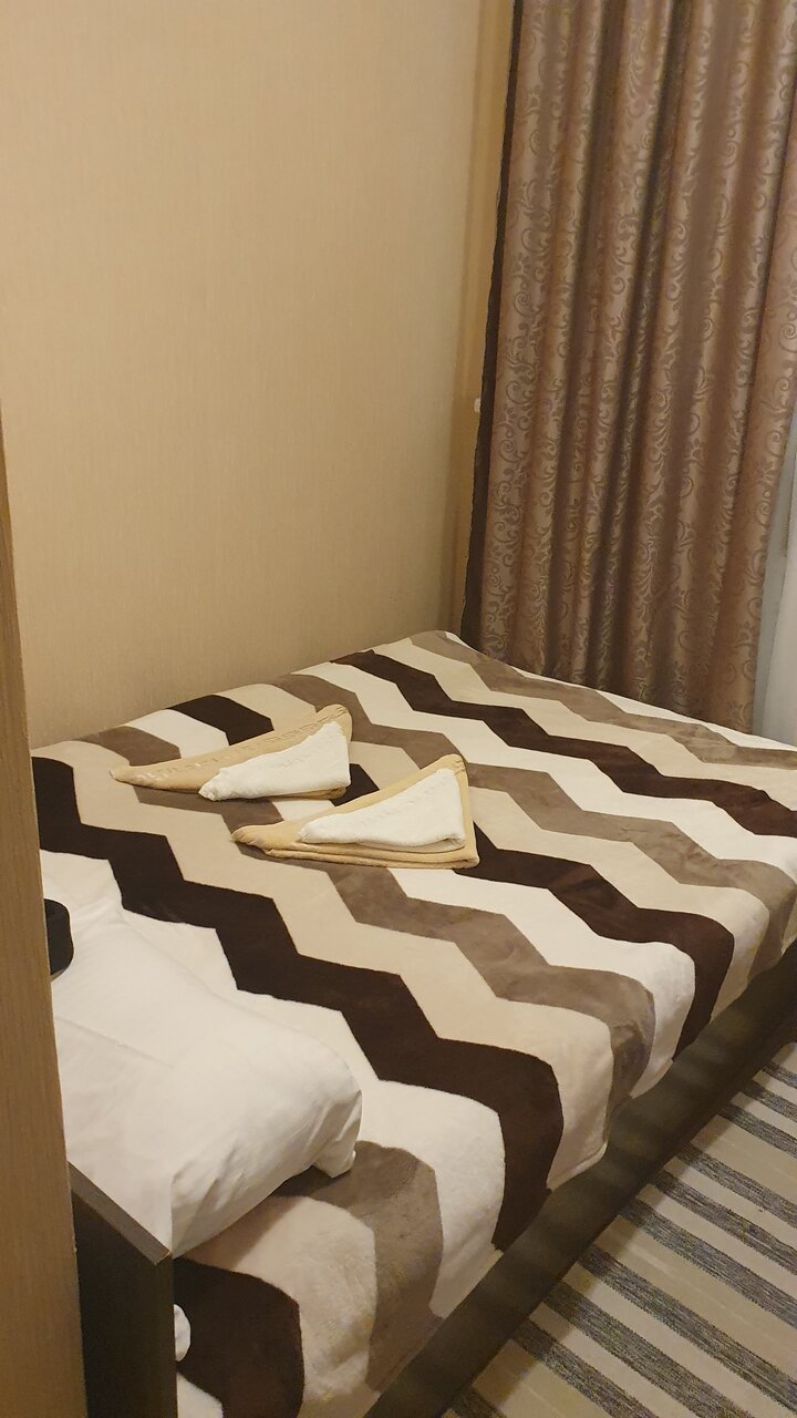 Маленький, уютный номер. Тесноват, в номере не хватает ‘личного’ чайника, и микроволновка с холодильником находятся у администратора, а не в общем коридоре, приходится постоянно обращаться, что немного стесняется. В целом на 4+ Пишу через год… Гостиница развивается, появилась мини кухня с чайником и микроволновка, теперь не нужно ‘дёргать’ бабушек кастелянш