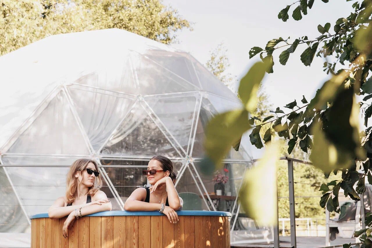 - Много интересных локаций для фотосессий.; Бассейн и зоны для загара.; Чистота и ухоженность территории.; Удобное, уютное и комфортное место.; Просторные домики.