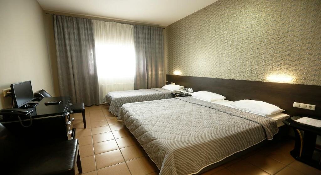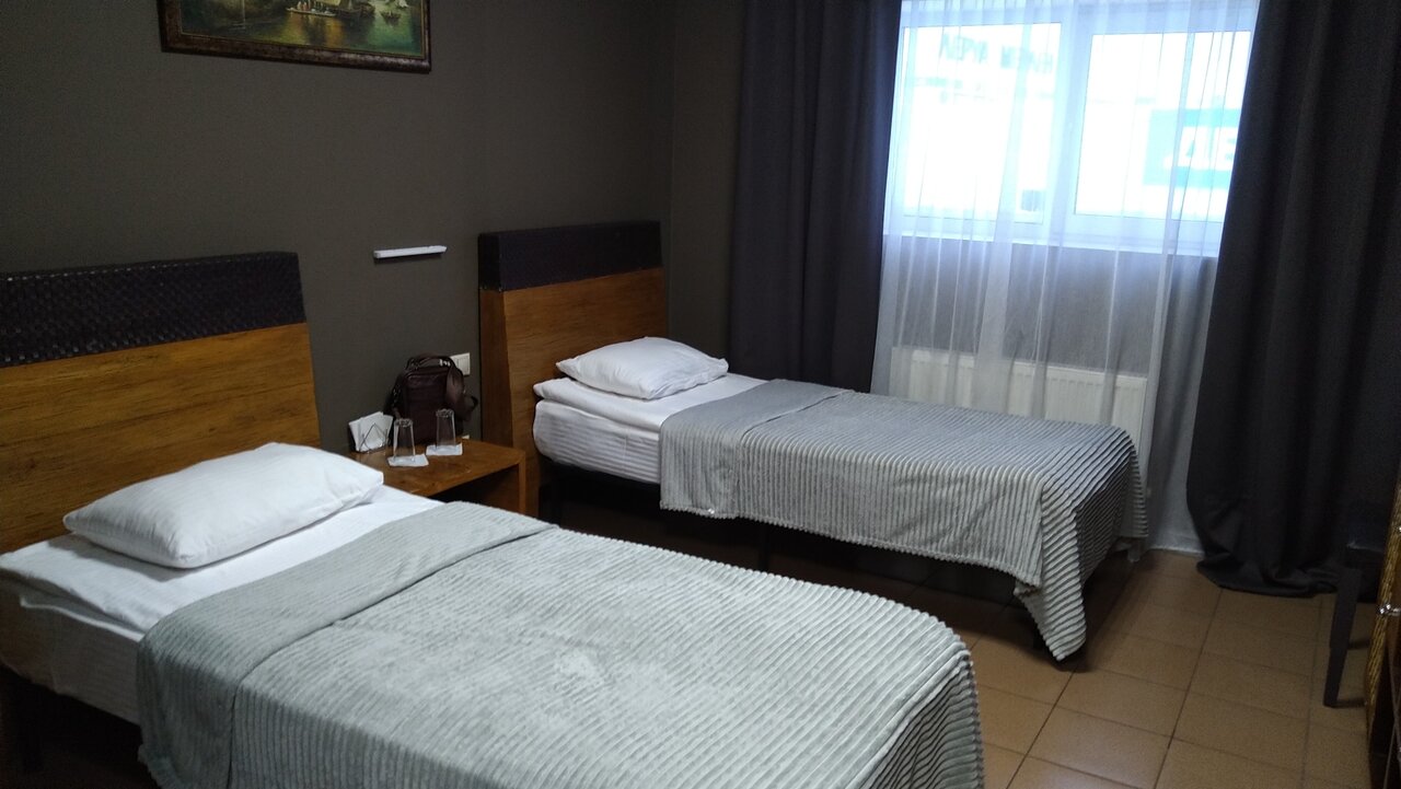 В отеле очень разнятся номера, от очень бедных, до очень не плохих, хоть и разница в цене минимальная. Рядом расположена трасса, это как плюс, так и минус. Если окна выходят на нее, очень шумно. Рядом есть кафе и рестораны, магазины ( глобус, декатлон и Леруа Мерлен)