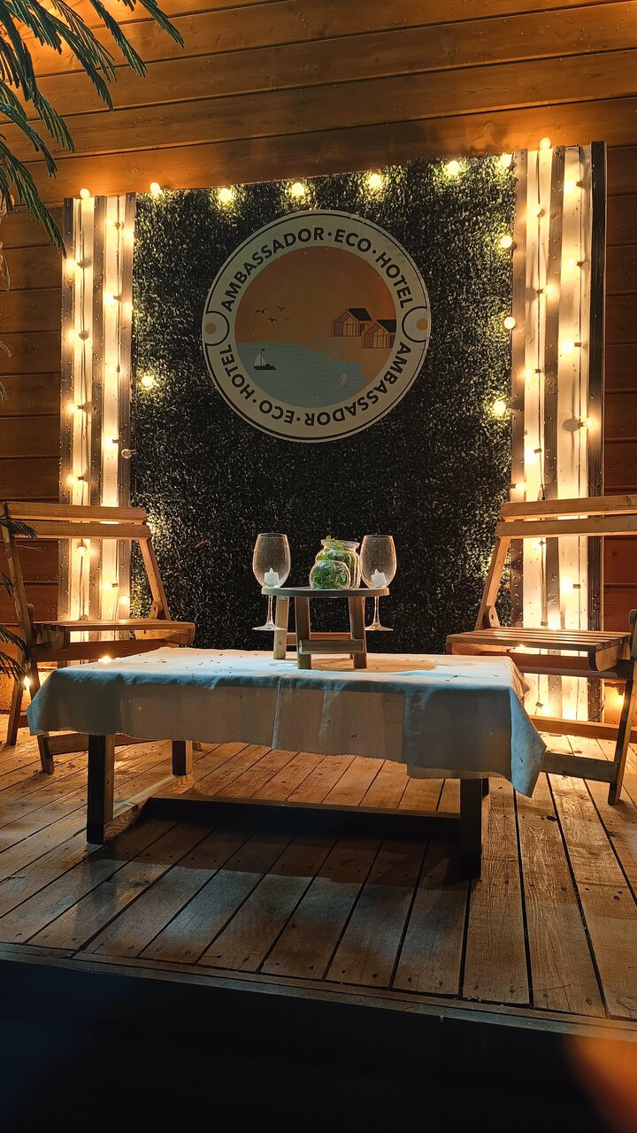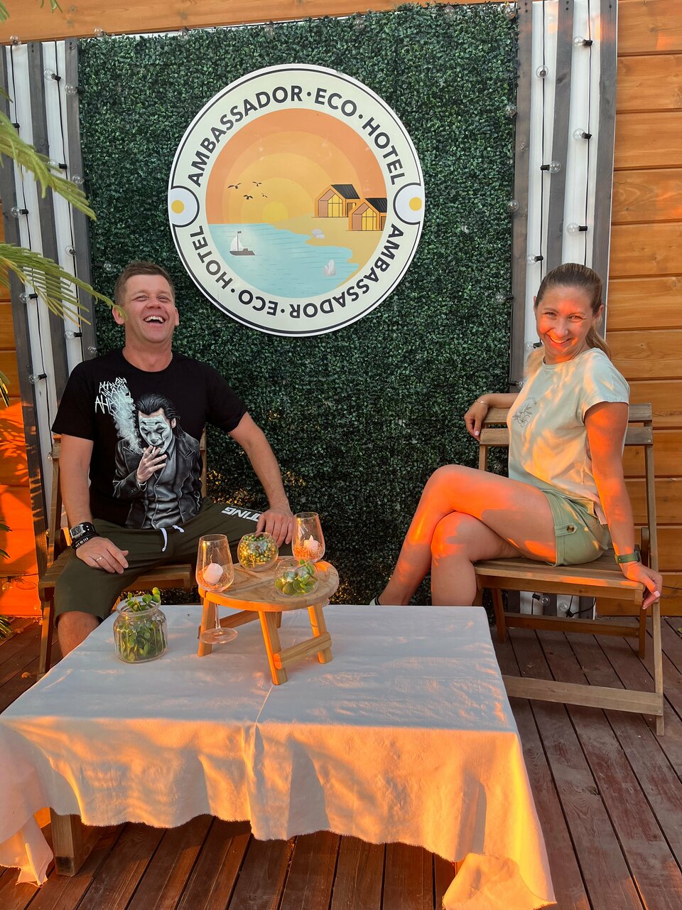 Здравствуйте друзья,побывали с супругой на отдыхе в эко зоне Ambassador в г.Керчь,Юркино,что могу сказать: Не забываемые эмоции и отдых,самый отличный и вежливый персонал,хочу отметить хостес,девушка Марина провела экскурсию по приезду на территории,всё что можно рассказала об этой территории,номера супер,чисто,убрано,есть мангальные зоны,где есть беседка и возможность помыть руки и принадлежности,бассейн у номера,море в 10 метрах с идеальным и чистым пляжем! Всё это входит в разовую стоимость,цены отличные,не заоблачные,шезлонги у бассейна,у пляжа,всё для людей. С стороны вижу реакцию детей,к.т. в восторге от того что море и бассейн,не вылезают! Сделать красивые фото заката и рассвета,разгоречённого вечера,это только сюда! Ставлю 5 из 5,поставил бы 6,очень приятное и тёплое чувство остаётся,не хочется уезжать,работают круглый год! Так что приезжайте,отдыхайте,бронируйте заранее,спрос растёт,не пожалеете,тут гостям рады!