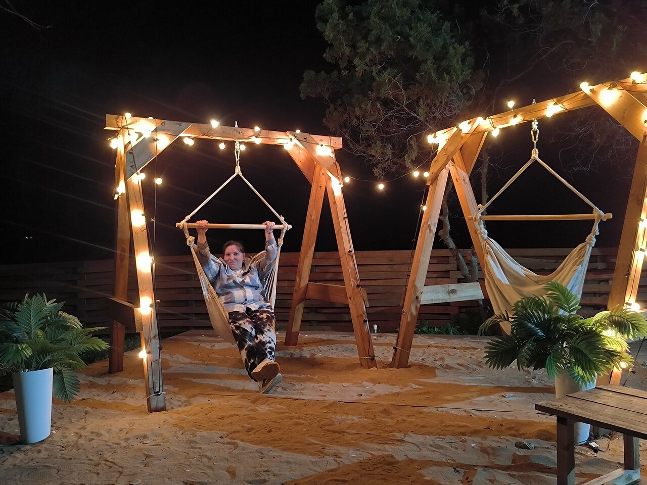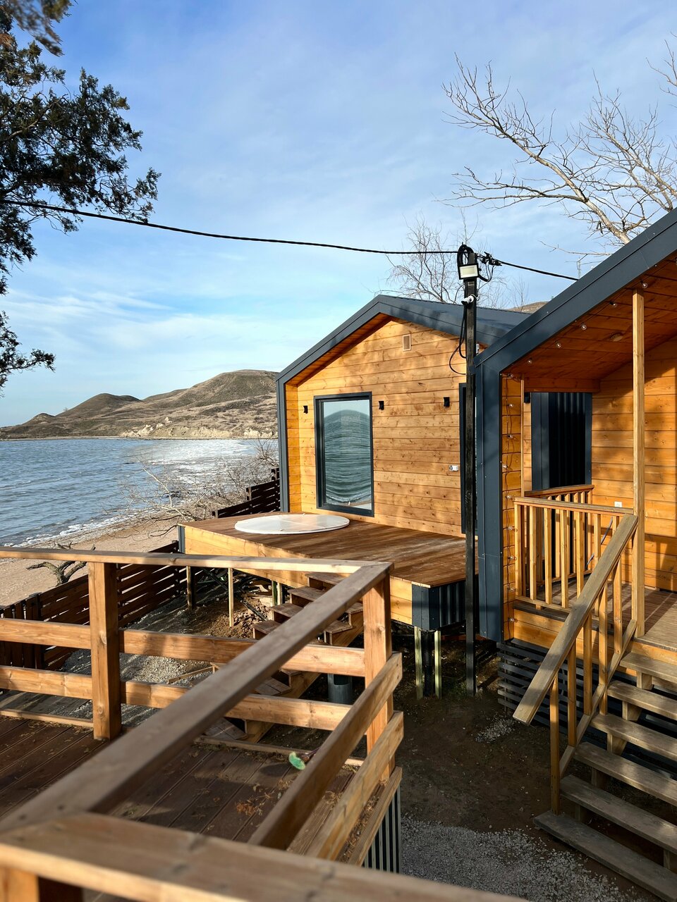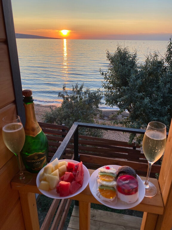 Душевное место для отдыха и мероприятий на свежем воздухе! Огороженная территория, парковка внутри, много свободного пространства, отдельная кухня и столовая, подготовленные мангальные зоны, приветливый и отзывчивый персонал. В домиках есть все необходимое для проживания трех человек, все на своих местах. До пляжа — рукой подать. Красивые пейзажи, можно встречать как рассветы, так и закаты! Были в начале ноября. Атмосферно! Хотелось бы еще сюда попасть летом!
