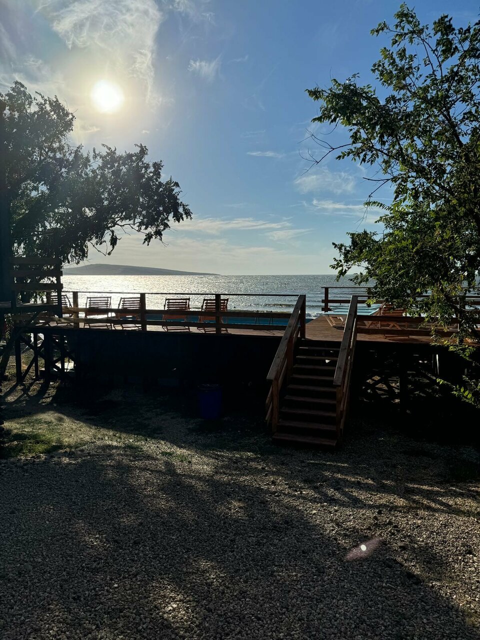 Замечательно место, прям на берегу моря. Здесь вас будут ждать восхитительные закаты. Очень уютные номера, вежливый персонал. Есть кухня для приготовления пищи, есть беседки и мангал. Рекомендую. И да в любое время года вам будут рады.