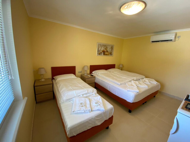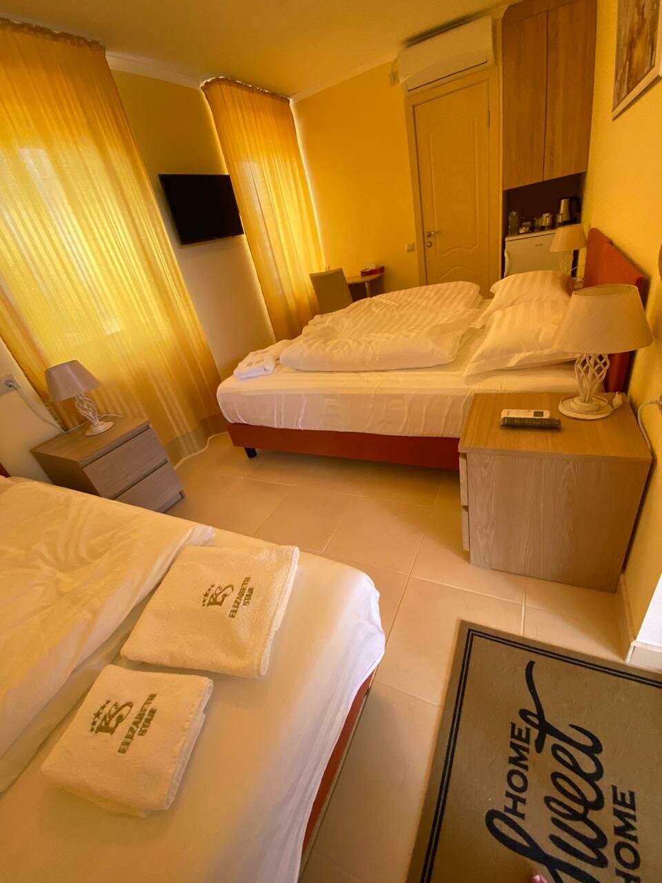 Отдыхали в этом году с любимым человеком на Вилле Элизабет Стар. Очень понравилось, уютная атмосфера, потрясающий номер, гостеприимные хозяева. В номере чисто и уютно. Имеется всё необходимое: холодильник, кондиционер, фен, чайник, чай, кофе, даже презент от радушных хозяев — бутылочка шампанского! Море в шаговой доступности. Тихое и спокойное место. Рекомендую!