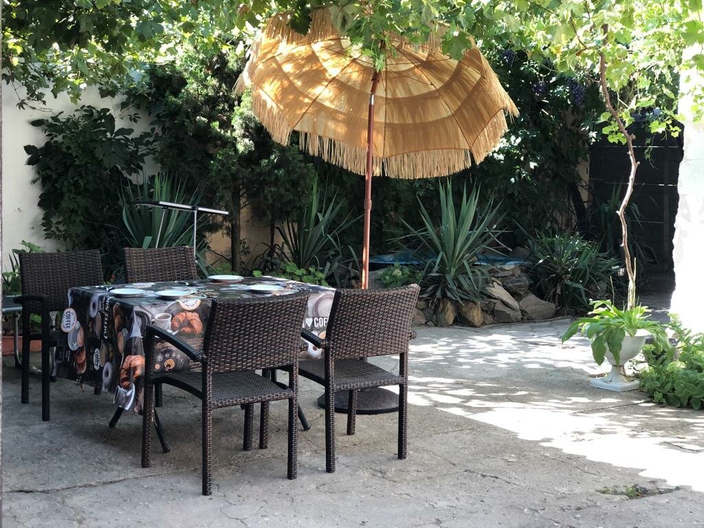 Очень атмосферный дом со своим внутренним двором. Скамеечки, фонтанчик — создается очень дружелюбная атмосфера. Молодцы владельцы, делают свое вино, а теперь еще и своя пасека есть. В гостинице тихо, чистенько, номера удобные. Ну и конечно шикарные песчаные пляжи, чистое спокойное море, интересные окрестности, по которым можно прогуляться. После мегаполиса тихие уютные бухточки — самое то!!! А какие закаты…. А как готовят только что выловленную рыбку! Очень рекомендую это место тем, кто хочет уюта, комфорта и в то же время насладиться природой