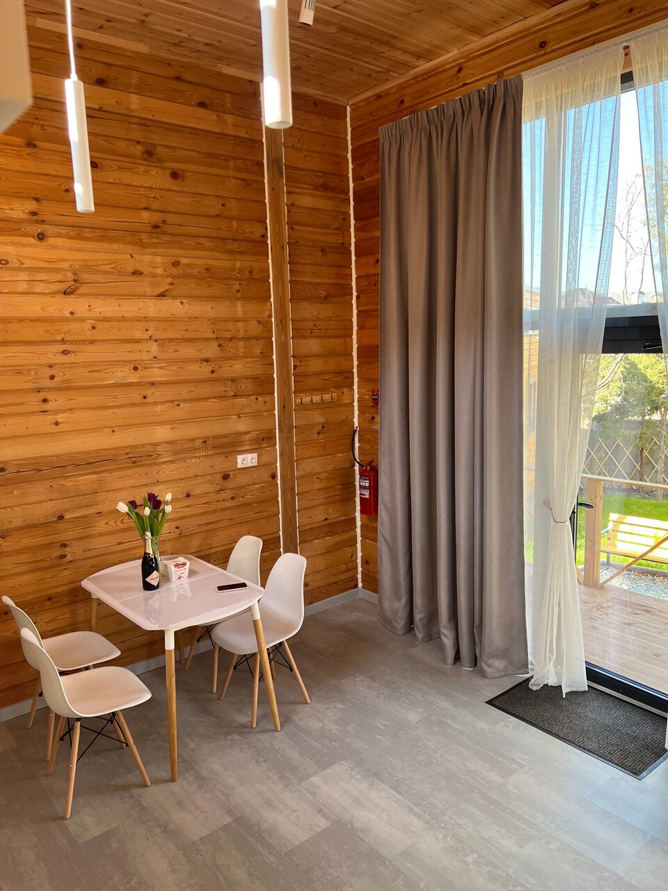 Отличное, уютное место Ухоженная территория, администратор связался за несколько дней перед заселением, домики и сантехника новые, есть все необходимые удобства, небольшой подогреваемый бассейн и зона барбекю