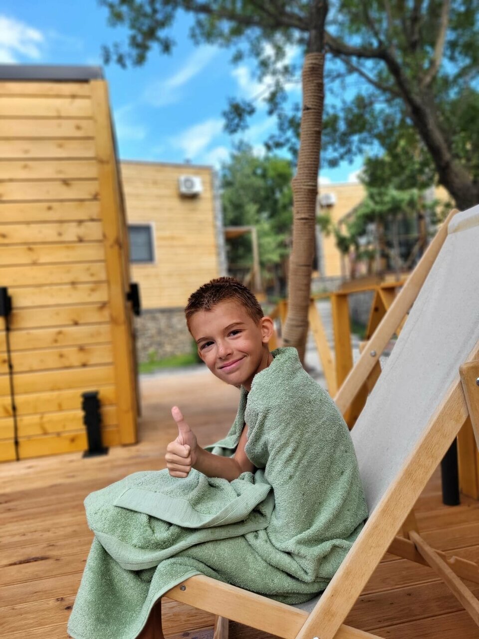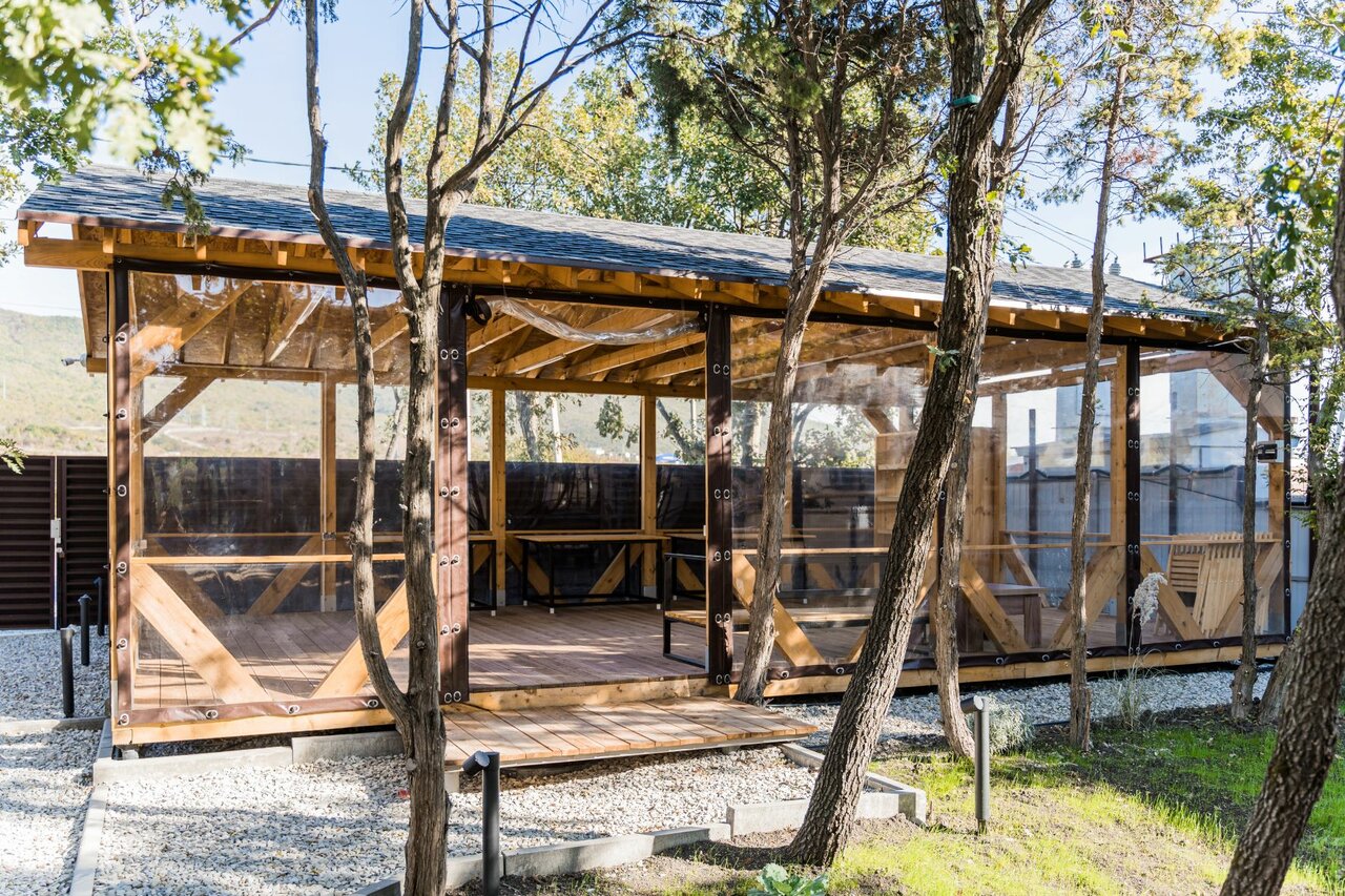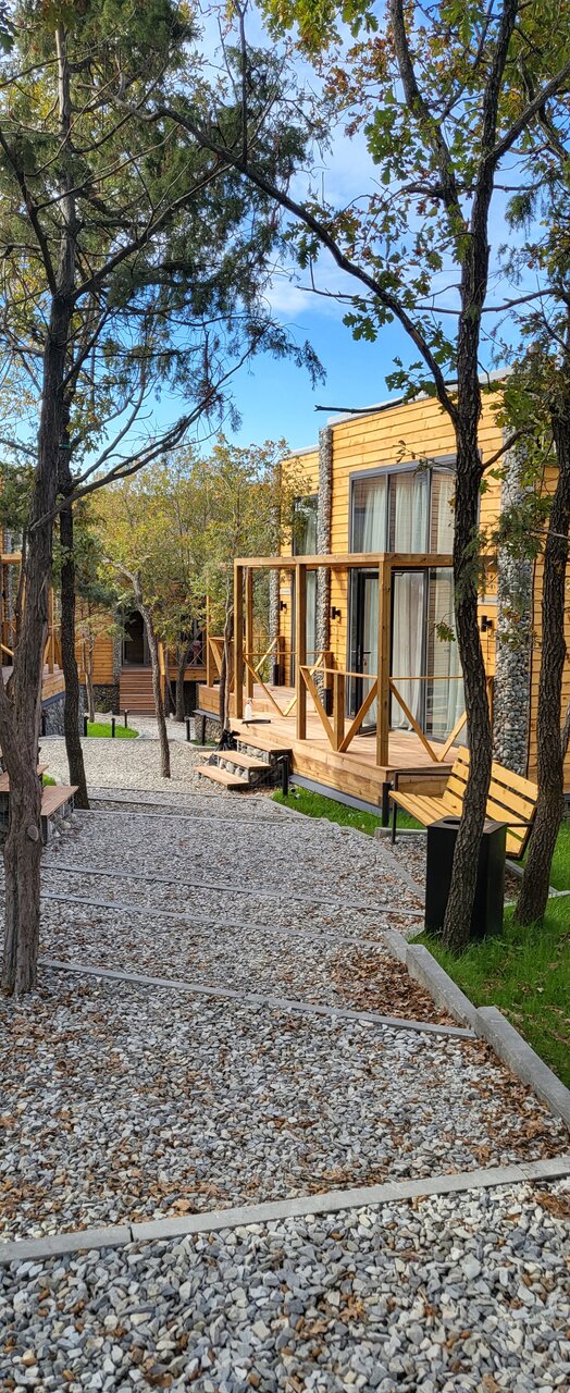 Шикарное место. Тут всё выполнено по такому очень интересному дизайнерскому стилю. Очень уютно, спокойно, душевно, как дома. Домики очень чистые, опрятные и уютные. Вся посуда, необходимая для готовки и обеда есть, качественная, чистая и приятная. Постельное бельё, как в лучших отелях. Уборка ежедневная. Мы много где были на Черноморском побережье и однозначно могу сказать, что это одно из самых лучших мест в данном регионе. Хочется выразить отдельно огромную благодарность администратору Ольге. Очень приятная, внимательная, вежливая и отзывчивая. С ней так легко и просто, от её улыбки на душе тепло. Обязательно будем рекомендовать данный отель и обязательно вернёмся