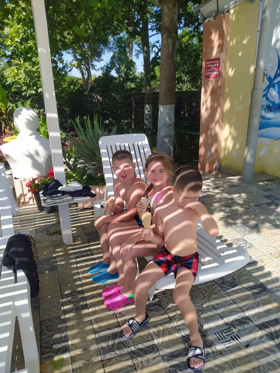 Отличное место для отдыха с маленькими детьми, есть детская площадка, игровая комната с игрушками. Бассейн детский и взрослый, хорошая территория, всё в тени. До пляжа 5-10 мин. Вежливый персонал. Общая кухня, в номерах на этаже есть чайник.