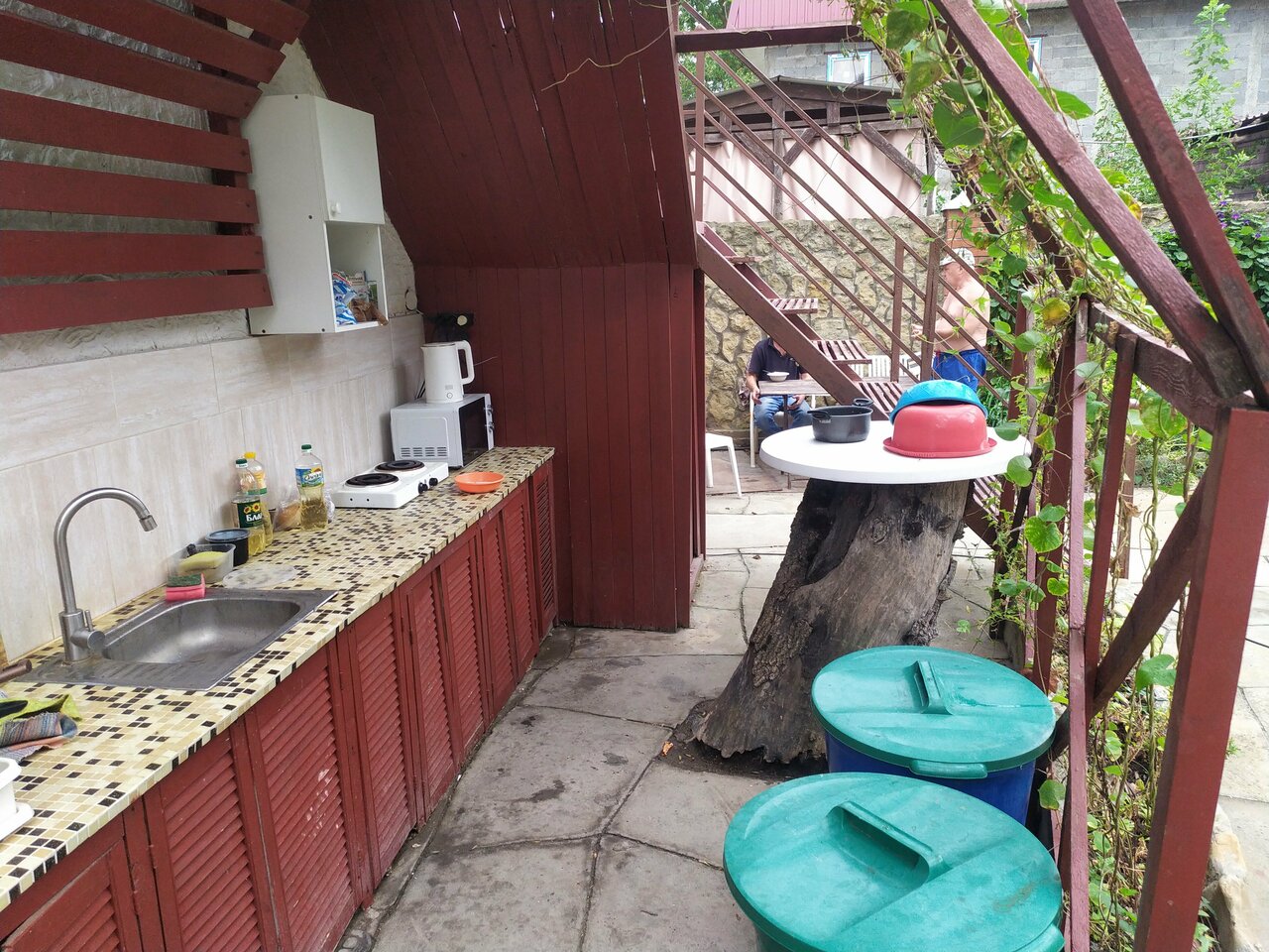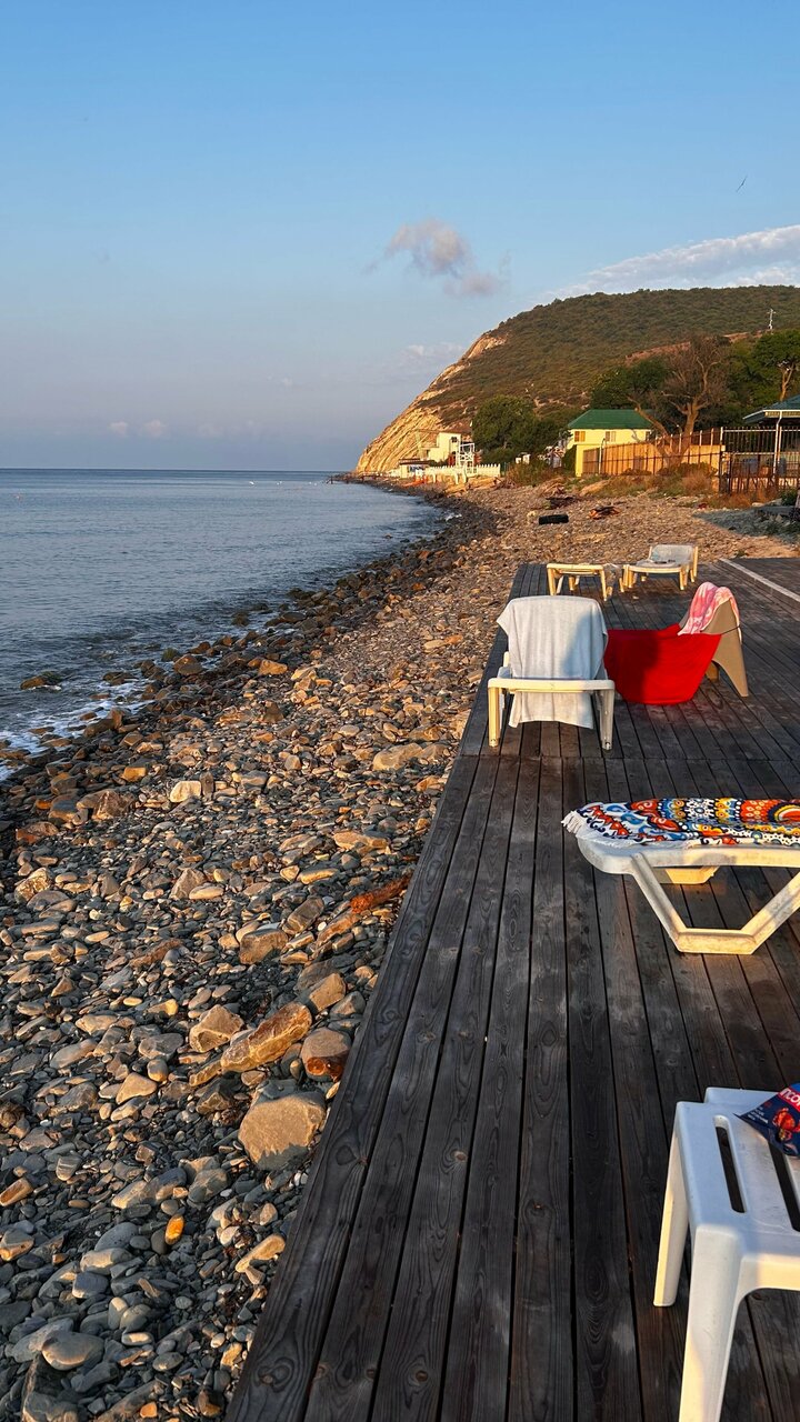 Отличное место для семейного отдыха, все условия есть, номера хорошие. Особенно нравится зона у моря в 10 метрах от двора, всегда имеются шезлонги на крытой террасе. Свое кафе, плов отменный, горячие супы на выбор. Есть мангалы во дворе, летняя кухня, баня и бассейн с морской водой. В общем все отлично