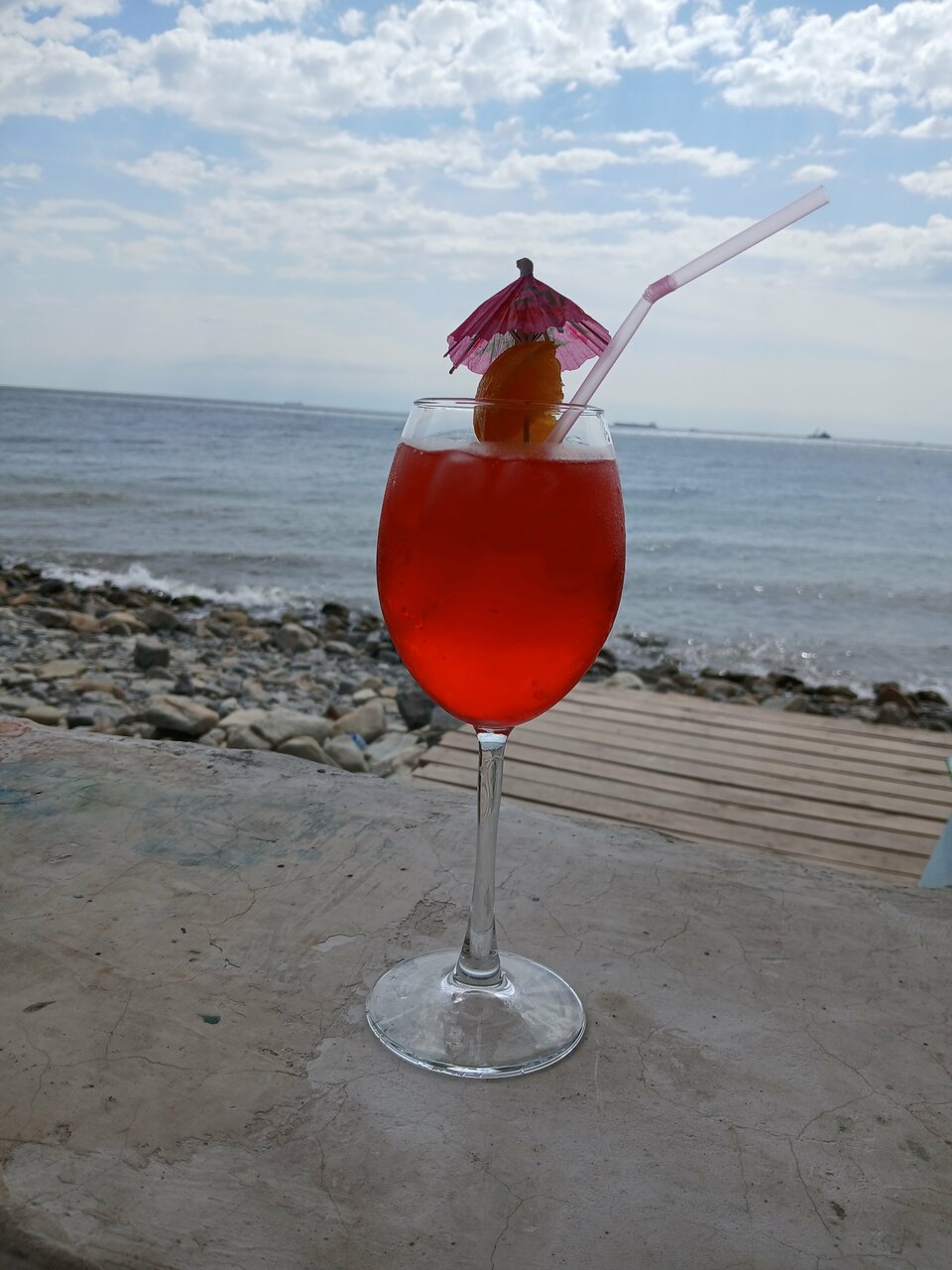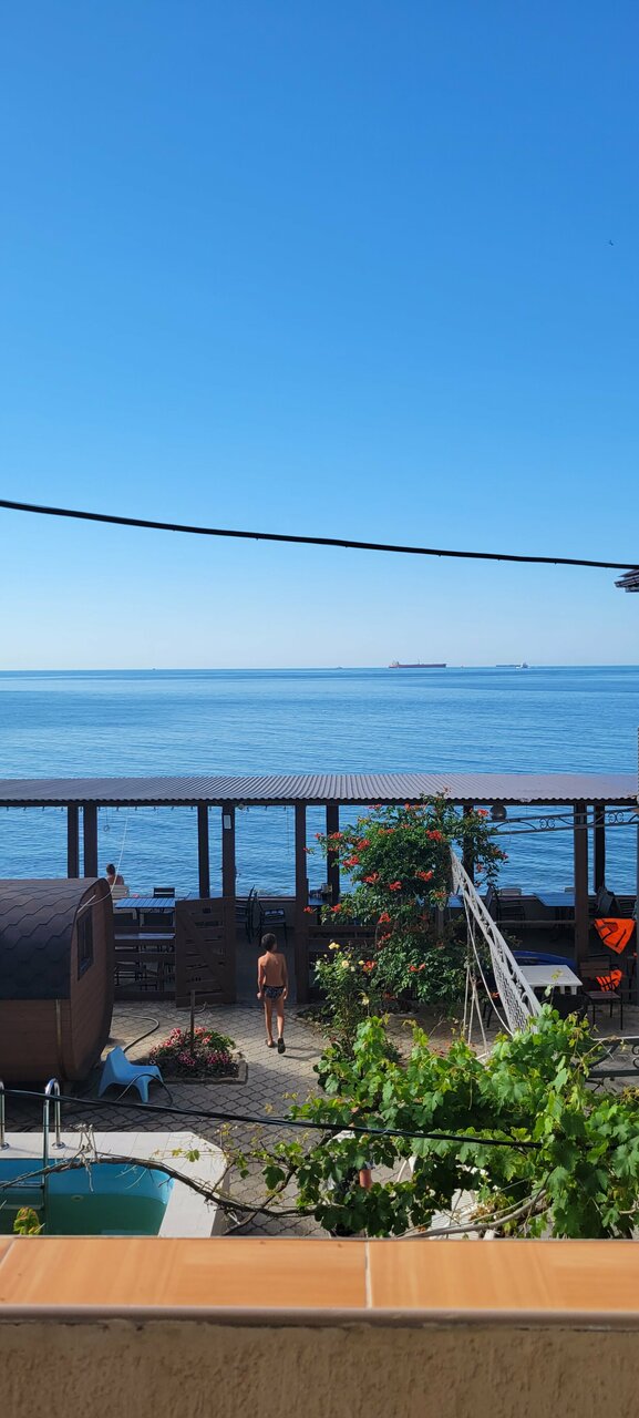 Плюс этой гостиницы, что находится на берегу моря (но берег отвратительный,купаться плохо, очень большие камни, на море здесь можно только смотреть). Вид из окна красивый. Кафе на берегу (которое непонятно когда работает), приехали в 11 вечера уже закрыто, в 9 утра было ещё закрыто. Есть своя кухня… Но очень грязное там всё, как и в номере. Номера в очень печальном состоянии, пыль и засохшие пятна на тумбочке и холодильнике, грязные шторы, шкаф сломан в нескольких местах, кровати ходят ходуном, как и туалет (шатается). В номере очень сильно пахнет сытостью, какой-то не свежестью… Постельное бельё чистое и есть полотенца, это плюс. Из минусов ещё — ржавая вода, которая очень сильно воняет болотом. Её не то пить, ей мыться страшно… Стены тонкие, соседей очень хорошо слышно и как ходят не только по полу,но и в туалет, и как разговаривают и как плачут дети… Около гостиницы (за территорией) протекает канализация, ооочень вонючаю.