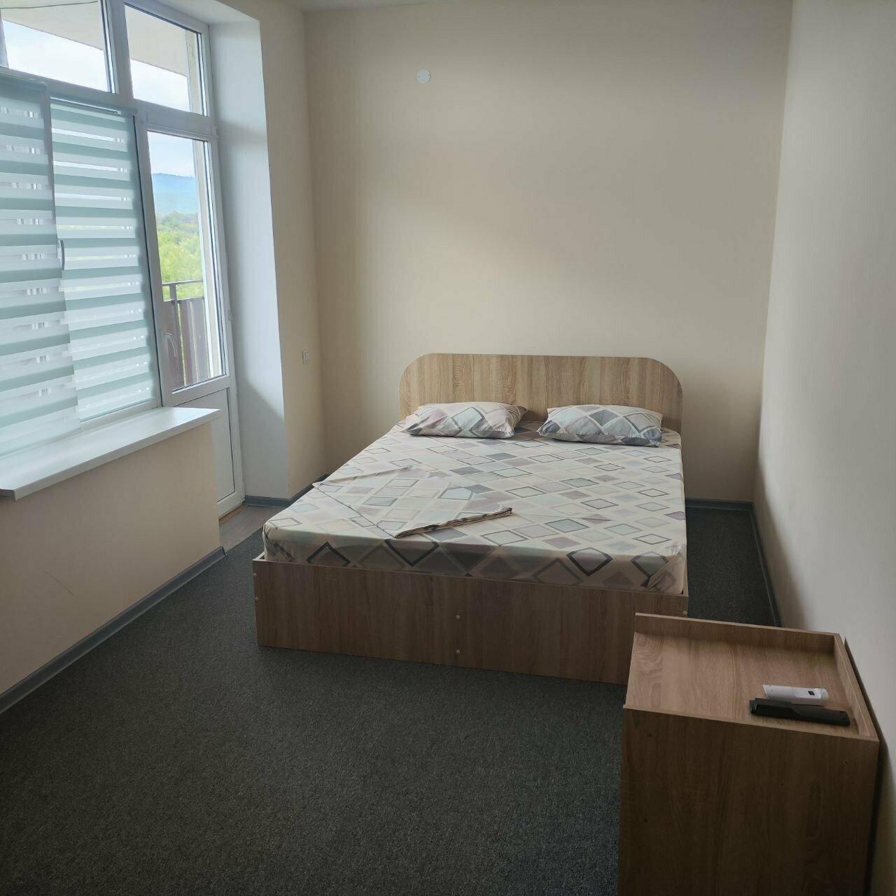 Однокомнатные апартаменты с видом на море и горы размещены на третьем этаже. В номере своя кухня, санузел (туалет, душ, раковина), спальня, кондиционер. Также в прихожей расположен диван, который раскладывается. Чудесный вариант для семейного отдыха!