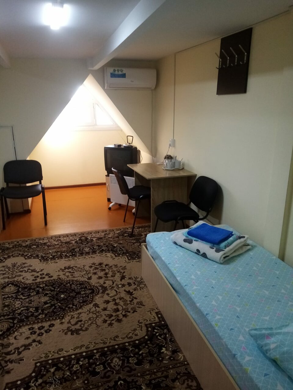 Остановились на ночлег с детьми, дали 4х-местный номер, всё чистенько, постель, полотенчики, есть кондиционер. Туалет в коридоре общий, бумага, мыло, освежитель, всё есть! Душ на улице. В коридоре стоит кулер, есть гладильная доска, холодильник, микроволновка, посуда, чай, кофе и даже сахар! Общее впечатление хорошее, приятно что всё продумано до мелочей!