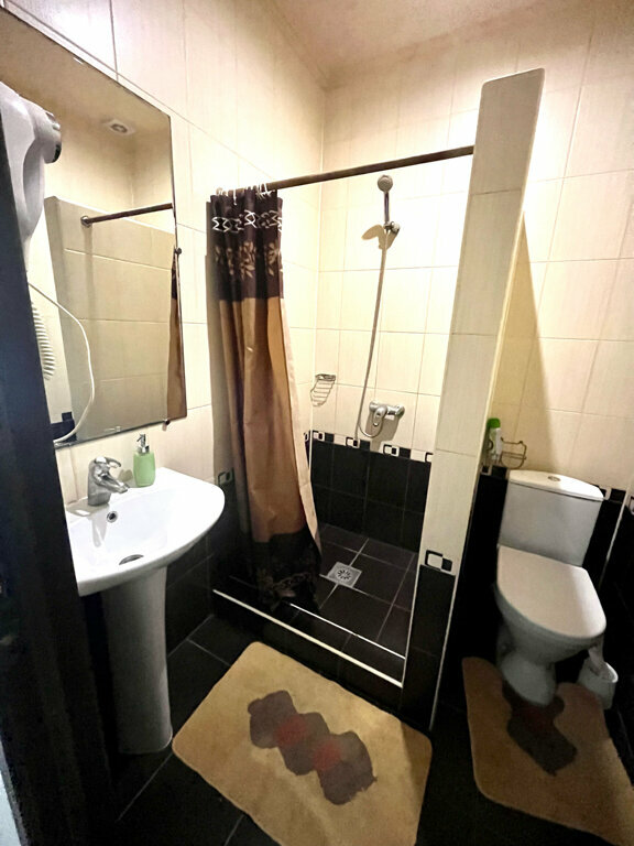 В номере: одна двуспальная кровать, душ, туалет, кондиционер, телевизор, холодильник, чайник