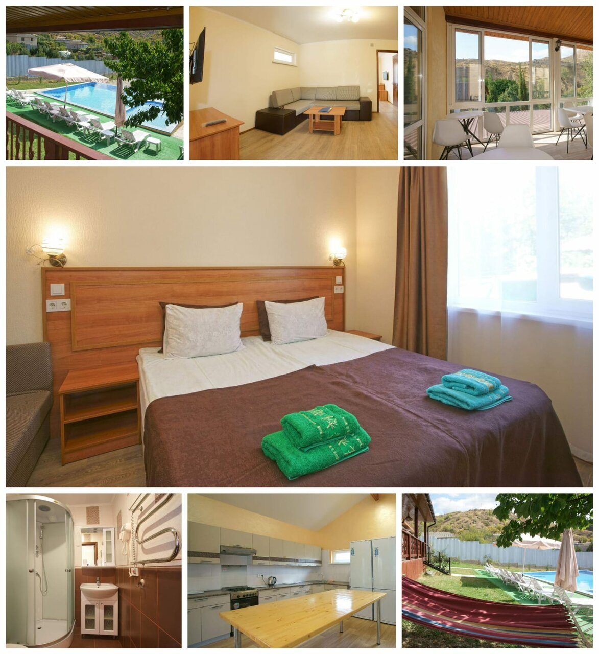 Мега- крутое место для отдыха! Зелная беседка, гамак, бассейн, кругом горы- красотища неописуемая! Чистота, радушные хозяева! Я бронировала номер у бассейна, потом мне захотелось номер с кухней…. Мне предложили коттедж, смутила лестница( дочь плохоходячая) Потом предложили коттедж со спальней на первом! Это конечно супер вариант! Спасибо за скидку и невероятно классный отдых! Обязательно приедем ещ!