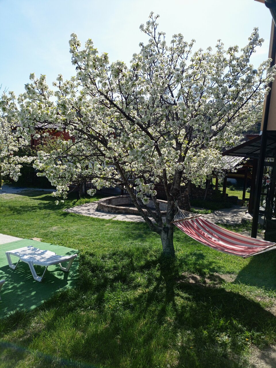 Потрясающее место, территория большая, ухоженная. Плодовае деревья. Большой бассейн. Парковка. Кафе. Комплексное питание.(правда немного однообразное) Есть общая кухня. Чисто. Очень радушные хозяева.