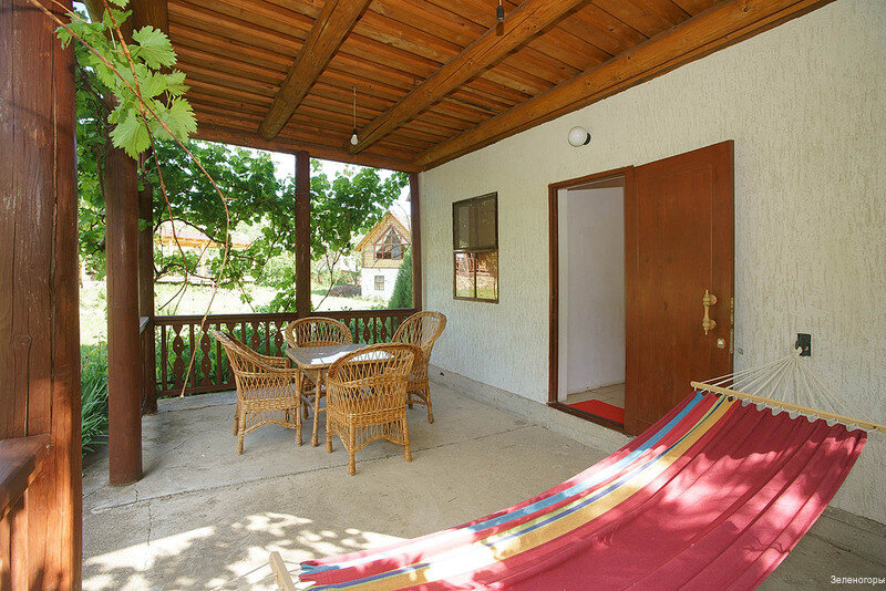 Коттедж для 4 песон в эко-усадьбе Зеленогорье, в Крыму, в горах недалеко от моря. Спальня и кухня-гостиная, просторная беседка, гамак. Дом укомплектован кухней, посудой и приборами. Два спутниковых ТВ, холодильник, свч, газовая плита, кондиционеры