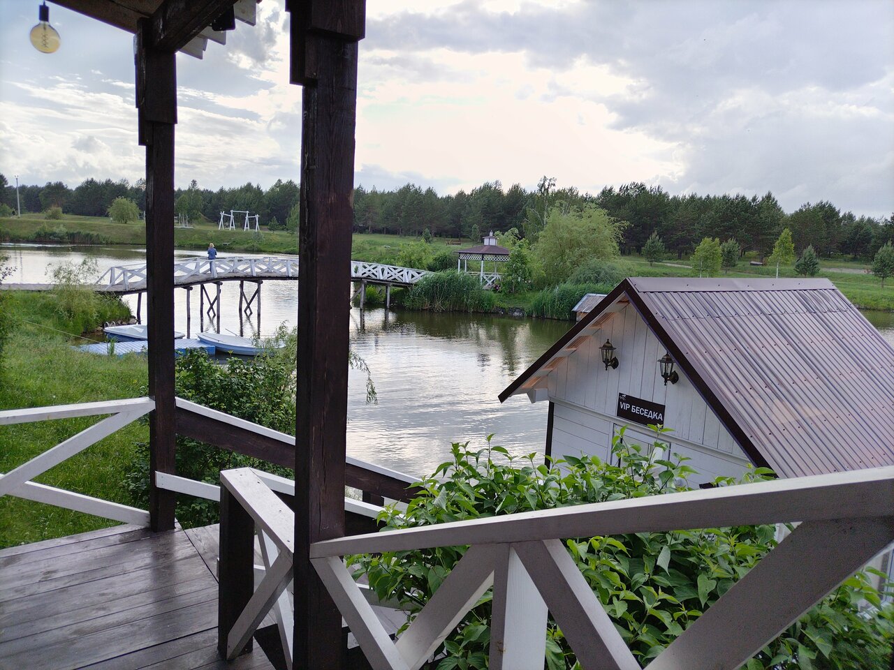 Отличное место для отдыха! Полное умиротворение! Дружелюбный, вежливый персонал, ухоженная территория. Баня с чаном с апельлинками это вообще супер!!!В коттедже чистота, все новое, не ушатаное . Постельное белье чистейшее!! В кафе очень вкусная еда, по домашнему ! Есть велосипеды, катамараны. Много качелек, красивые цветы . Огромное спасибо всем , кто за этим ухаживает !